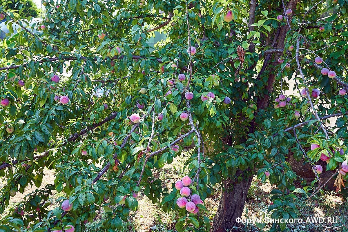 С большим участком, где есть: персики, абрикосы, грецкий орех, слива, айва.