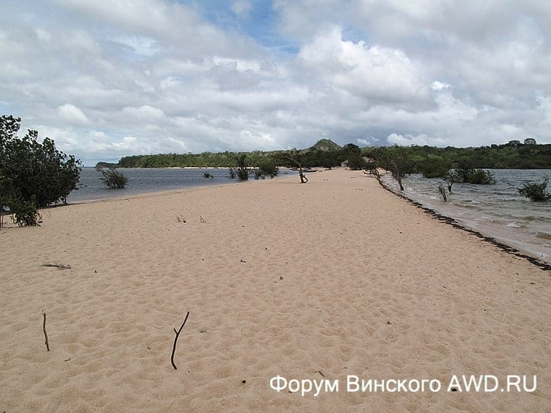 С одной стороны белоснежной косы река Rio Tapajos, с другой — озеро Лагуна Верде.