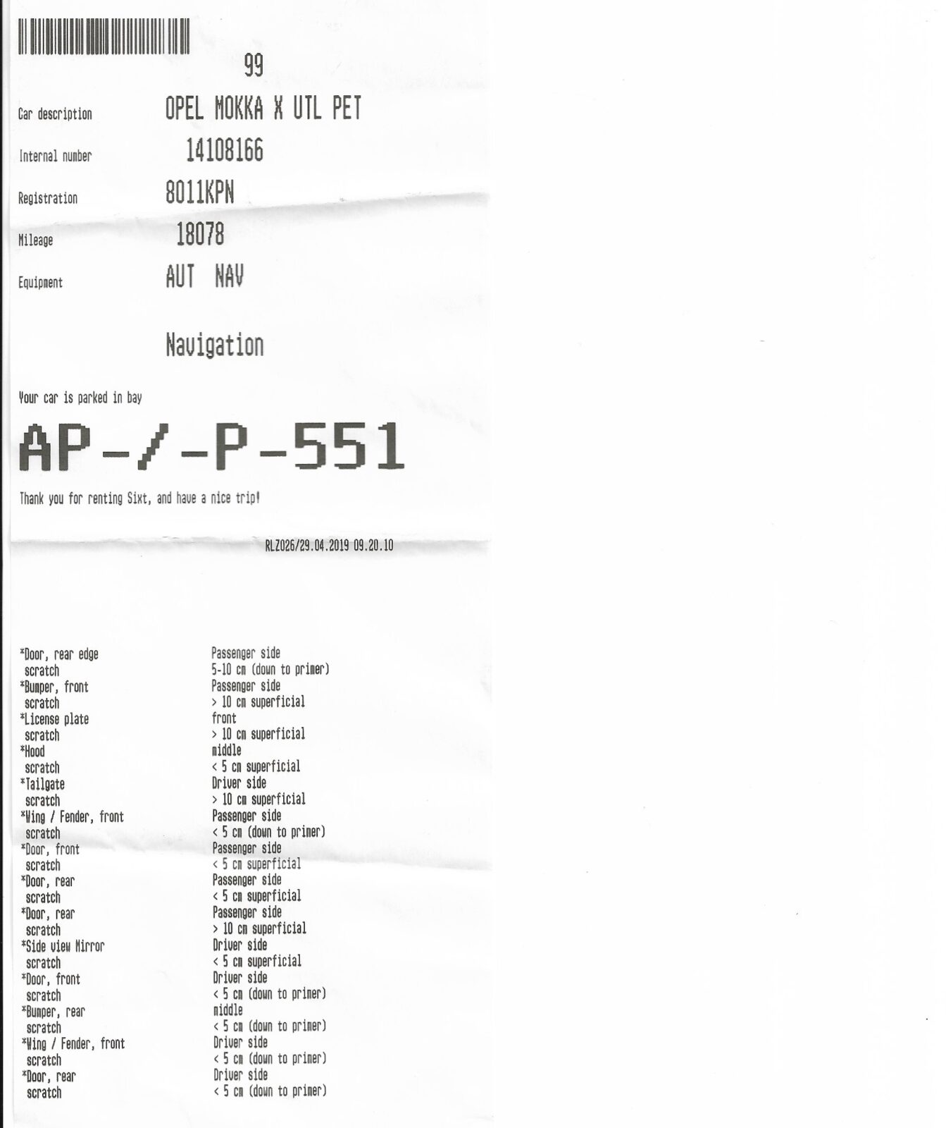Распечатанный контракт у Sixt — это факсимильная простыня с множеством букв.