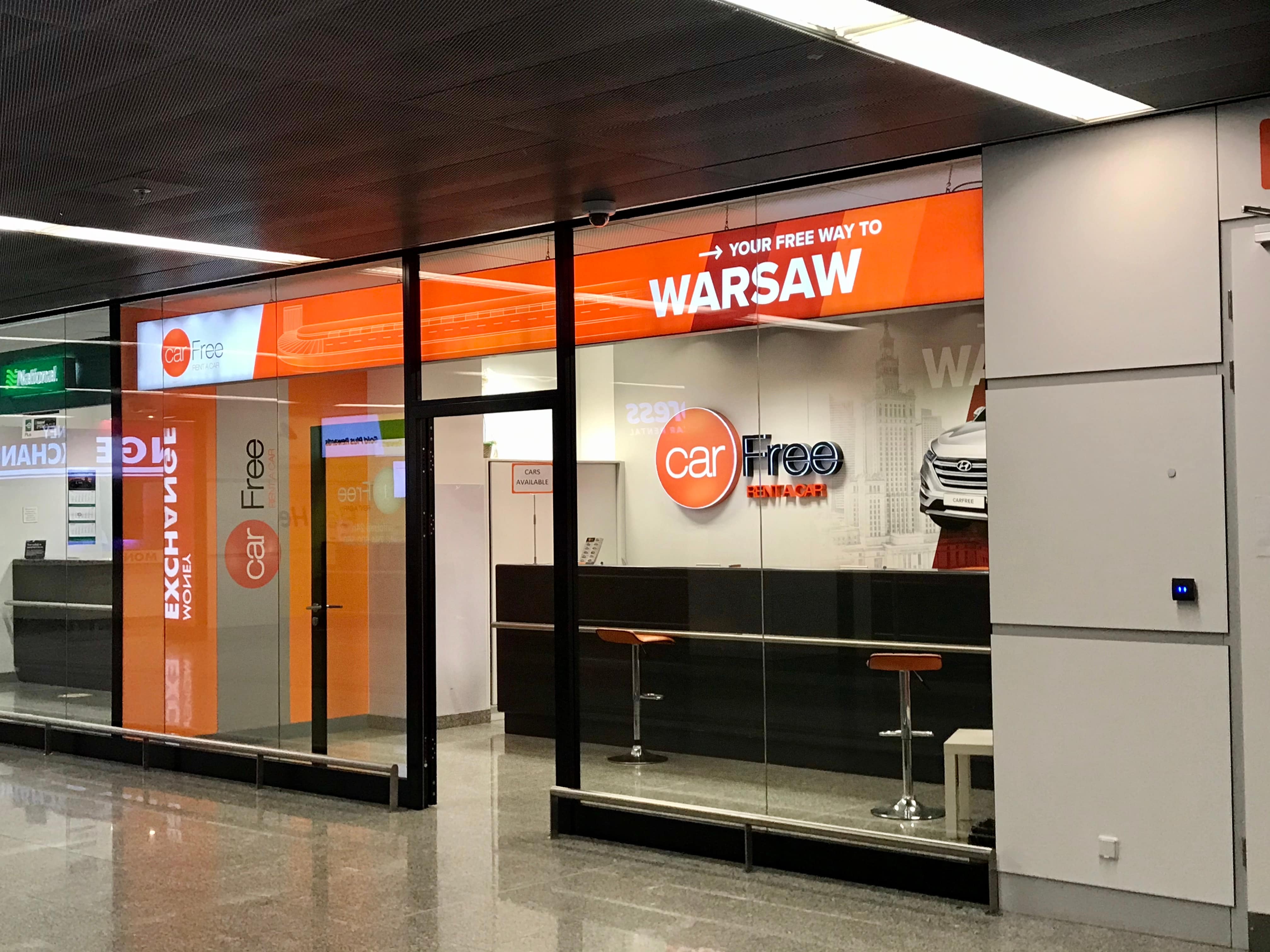Если будете искать машину в аэропорту Варшавы без предварительной брони, не теряйте время на контору которая изображена на титульном фото к этой статье.