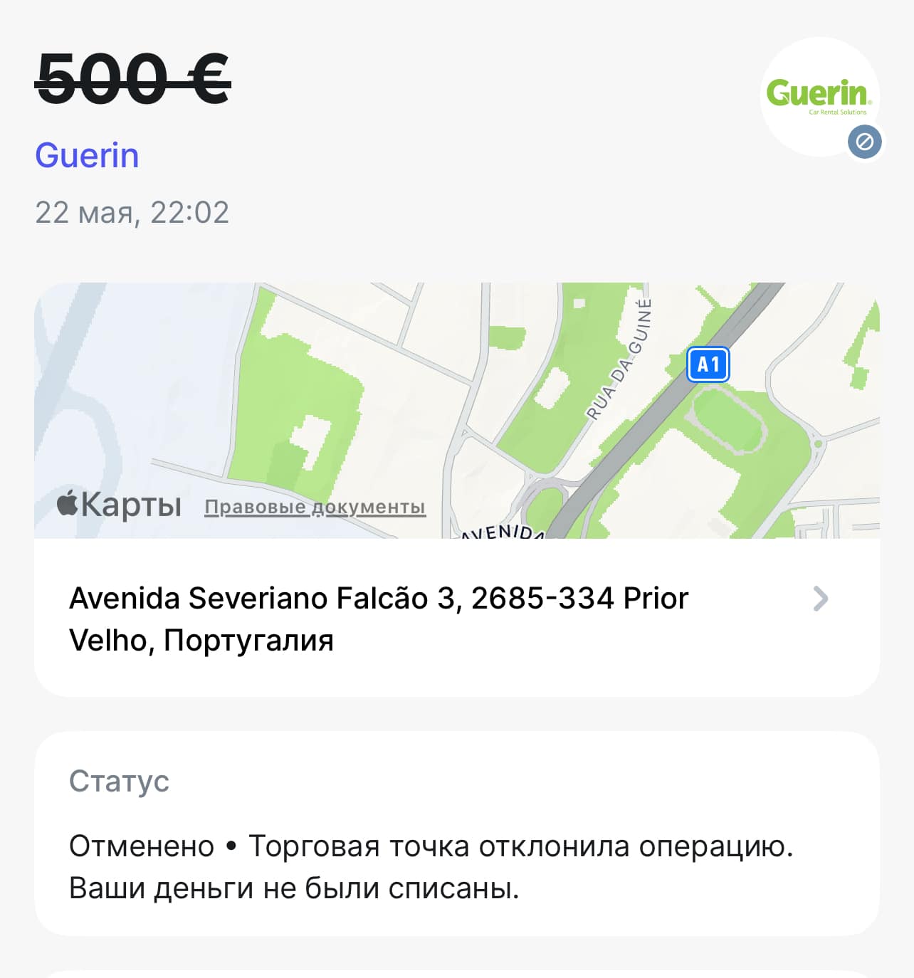 Система блокирнула 500 евро. Тут же я получил смс сообщение со ссылкой.