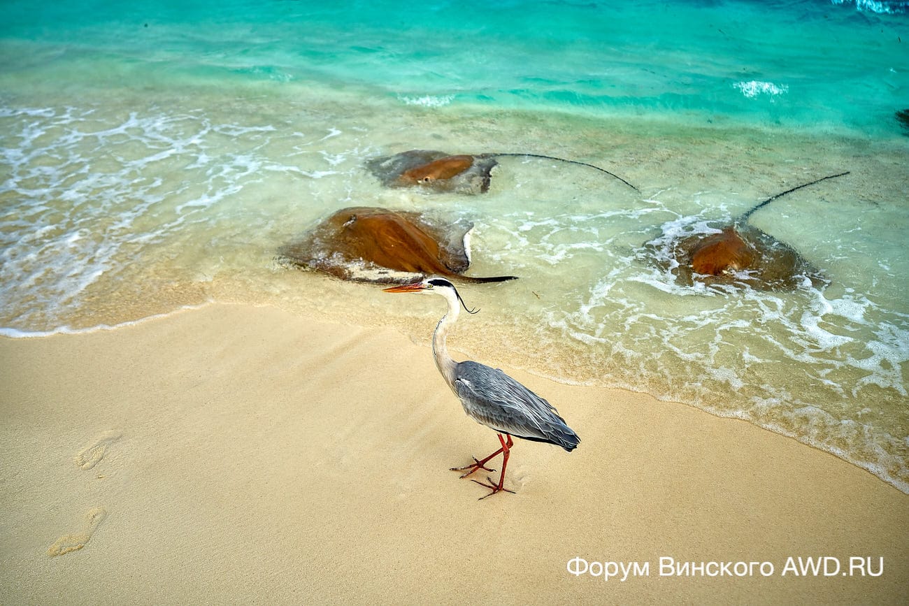 Ежедневно с 16:45 до 17:30 к пляжу рядом с главным причалом приплывает стая скатов.