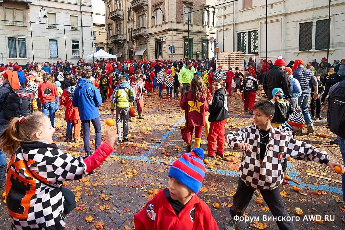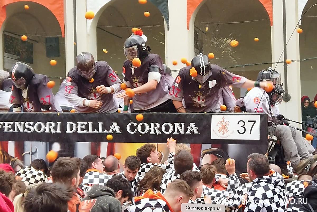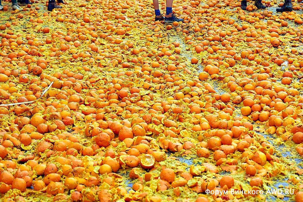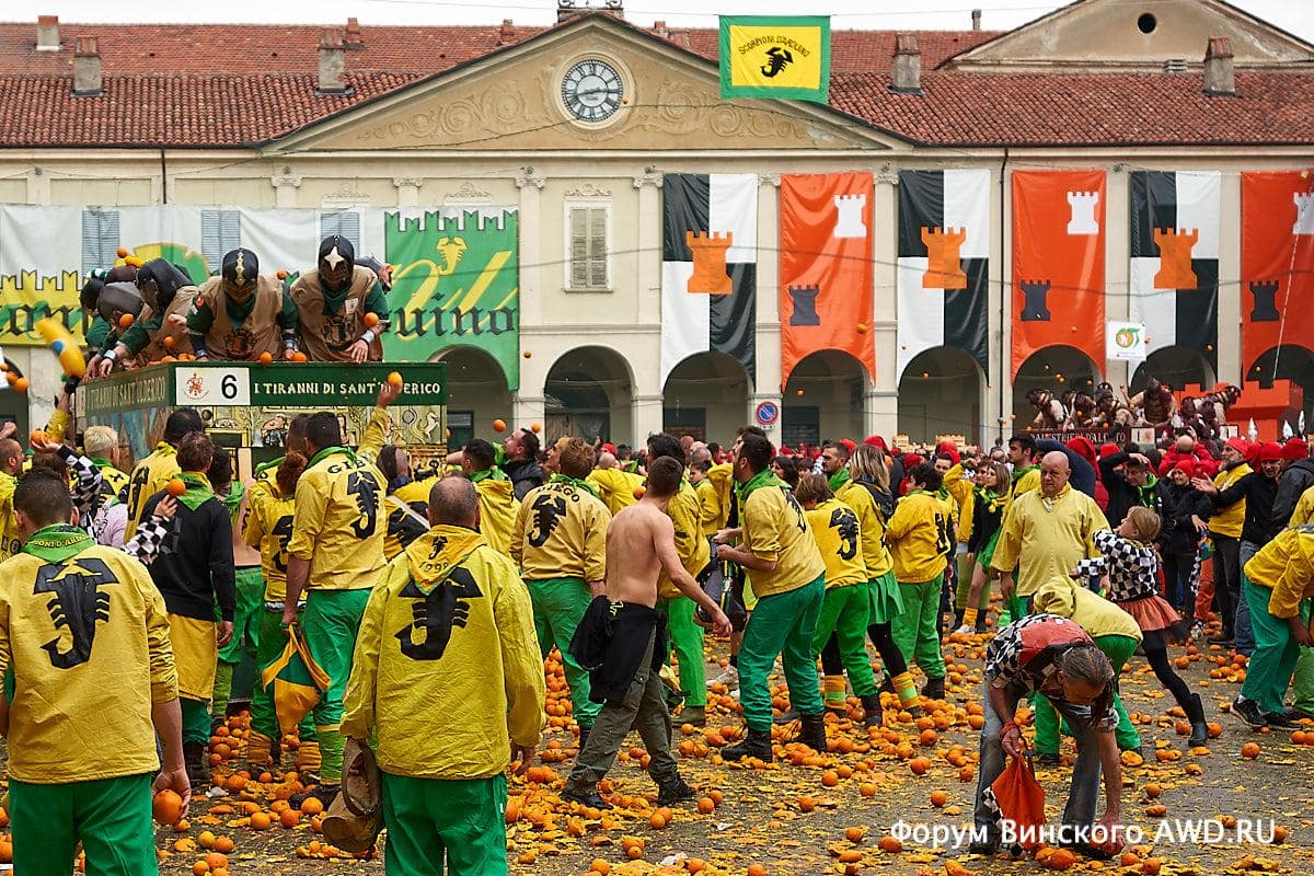 - Битва апельсинов Италии в Ивреа (Пьемонт)