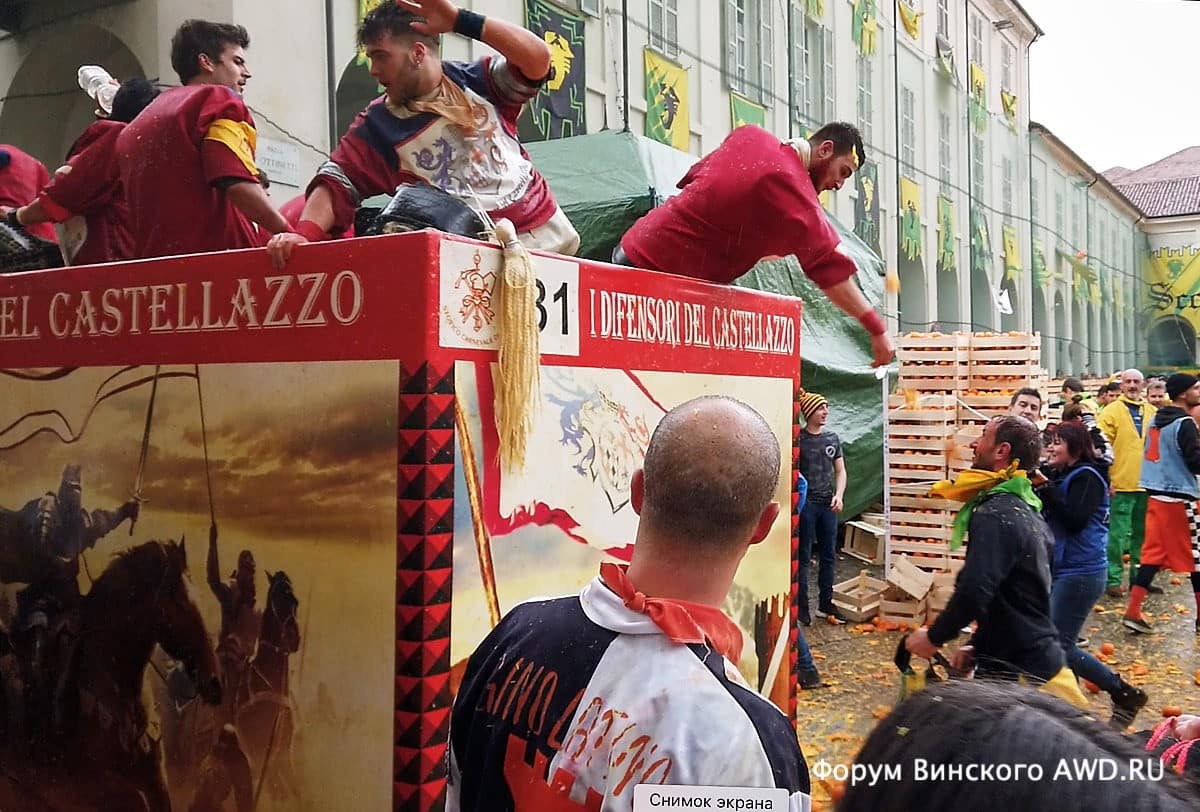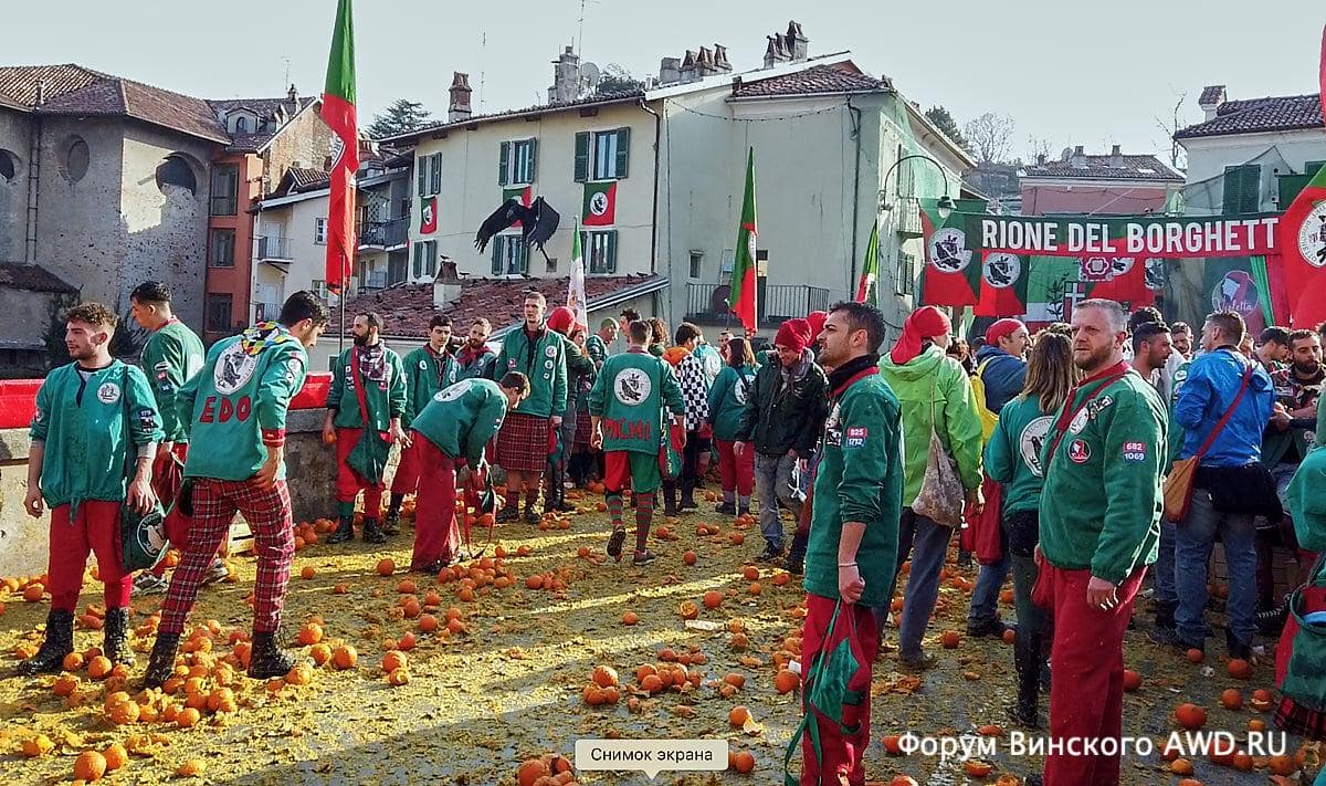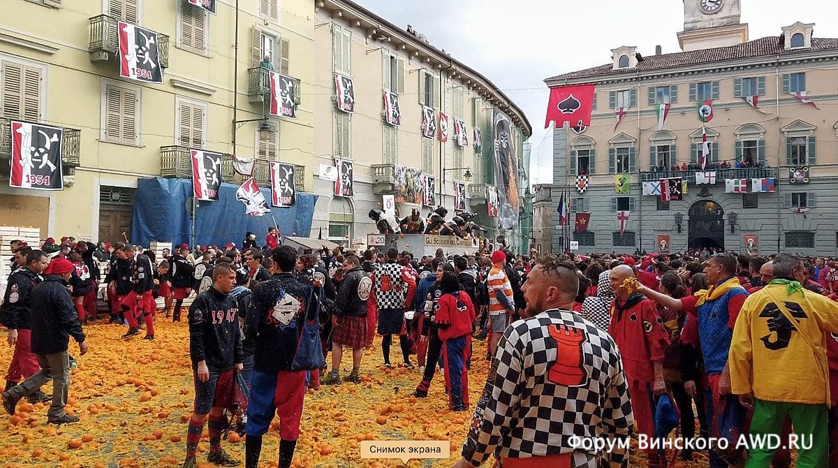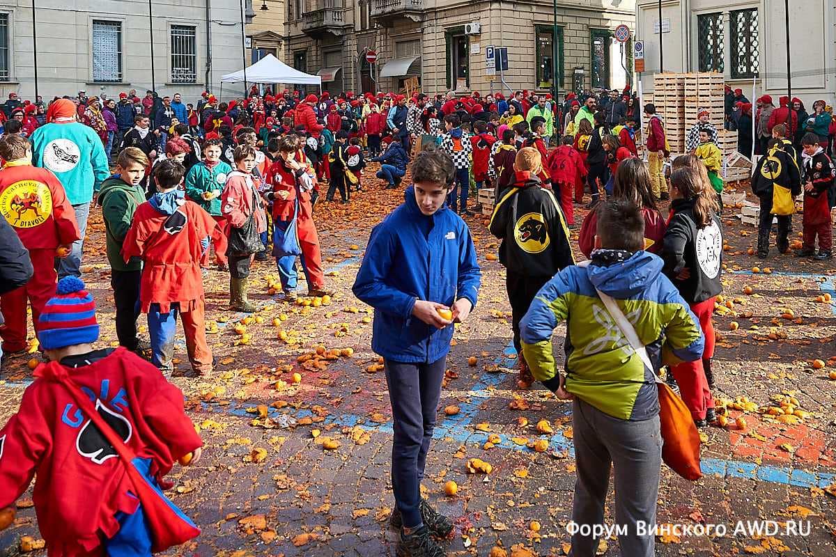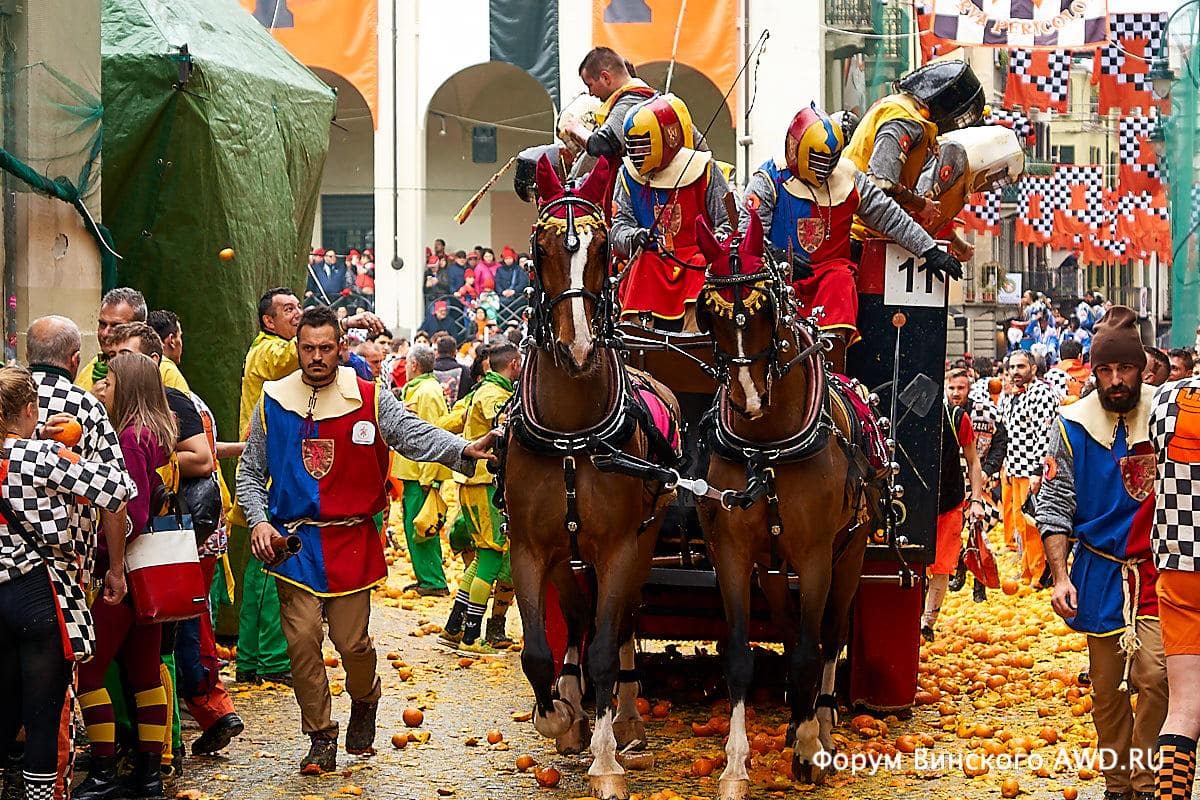 - Битва апельсинов Италии в Ивреа (Пьемонт)