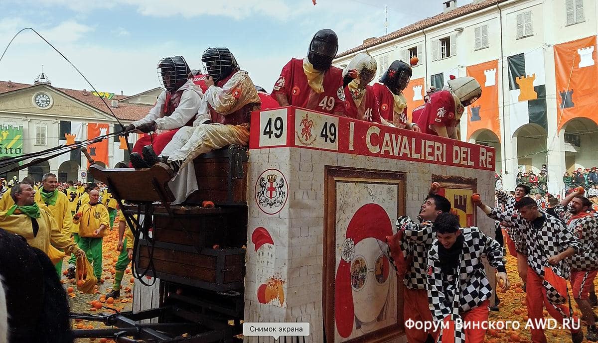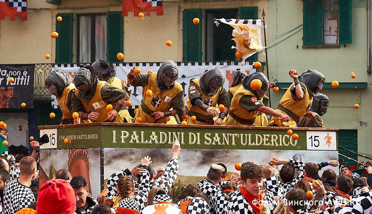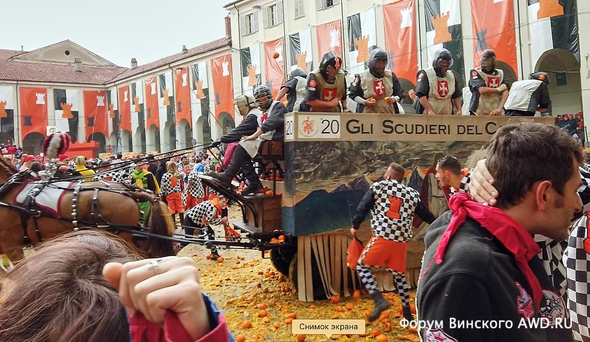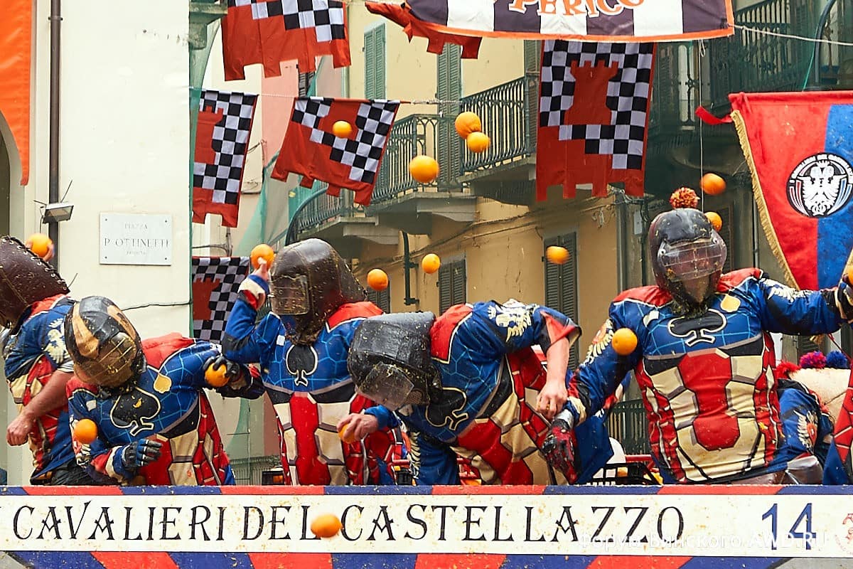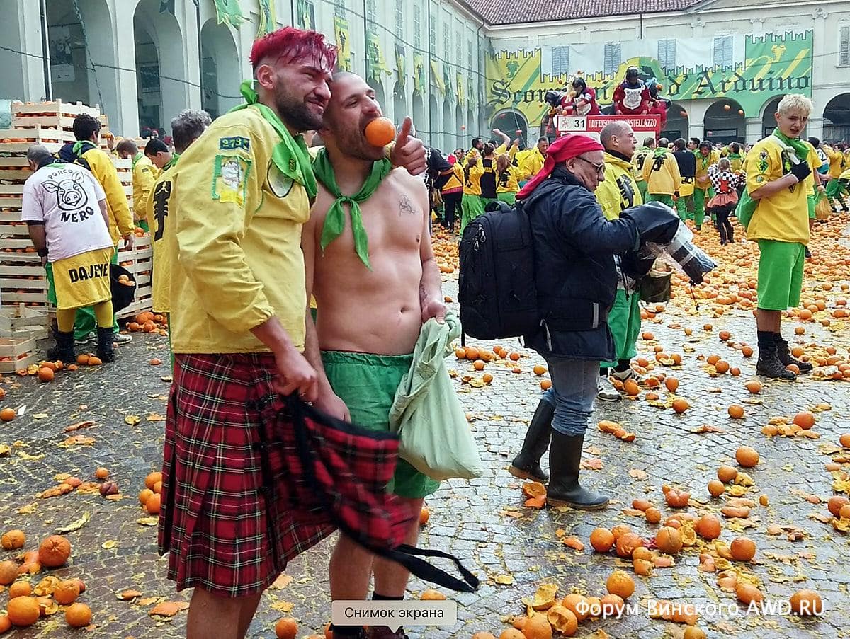 - Битва апельсинов Италии в Ивреа (Пьемонт)