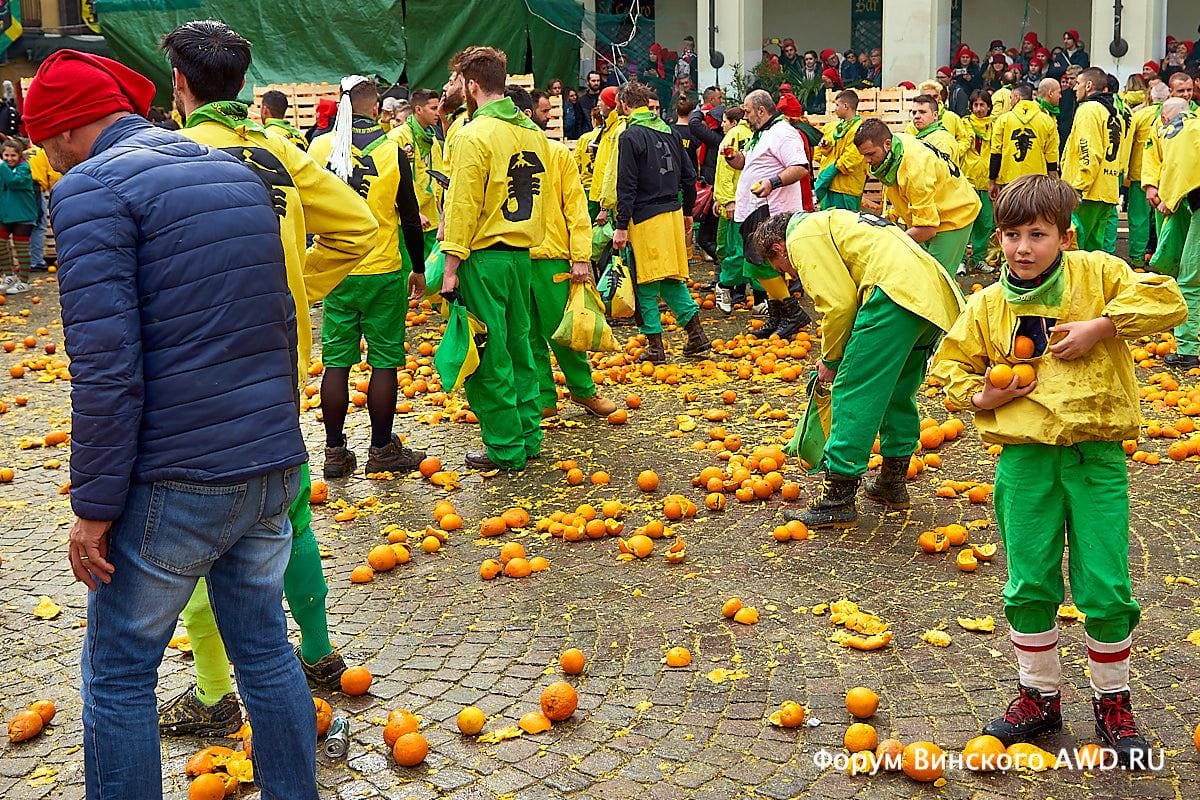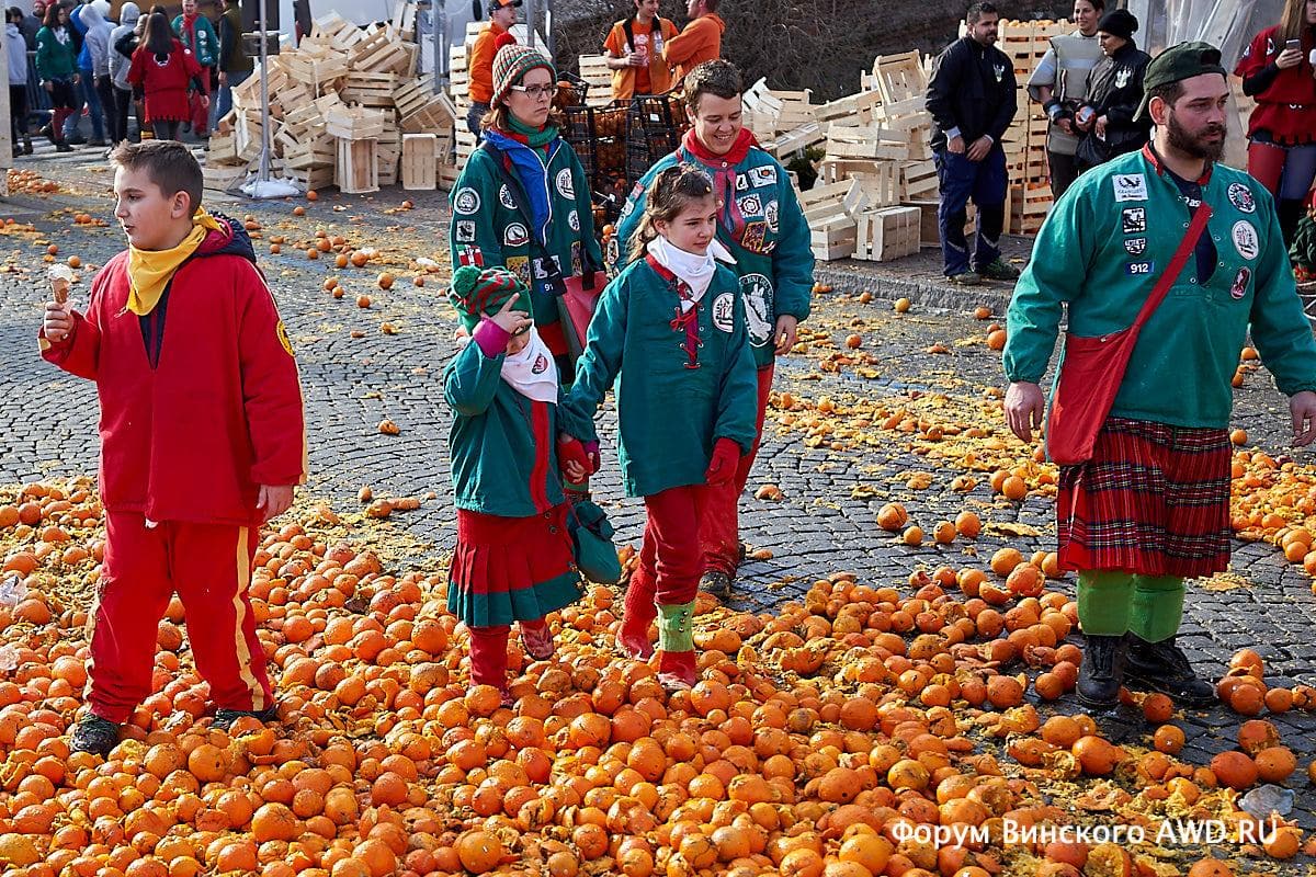 Битвы апельсинами проходят почти в конце карнавала, в течении трех дней подряд.
