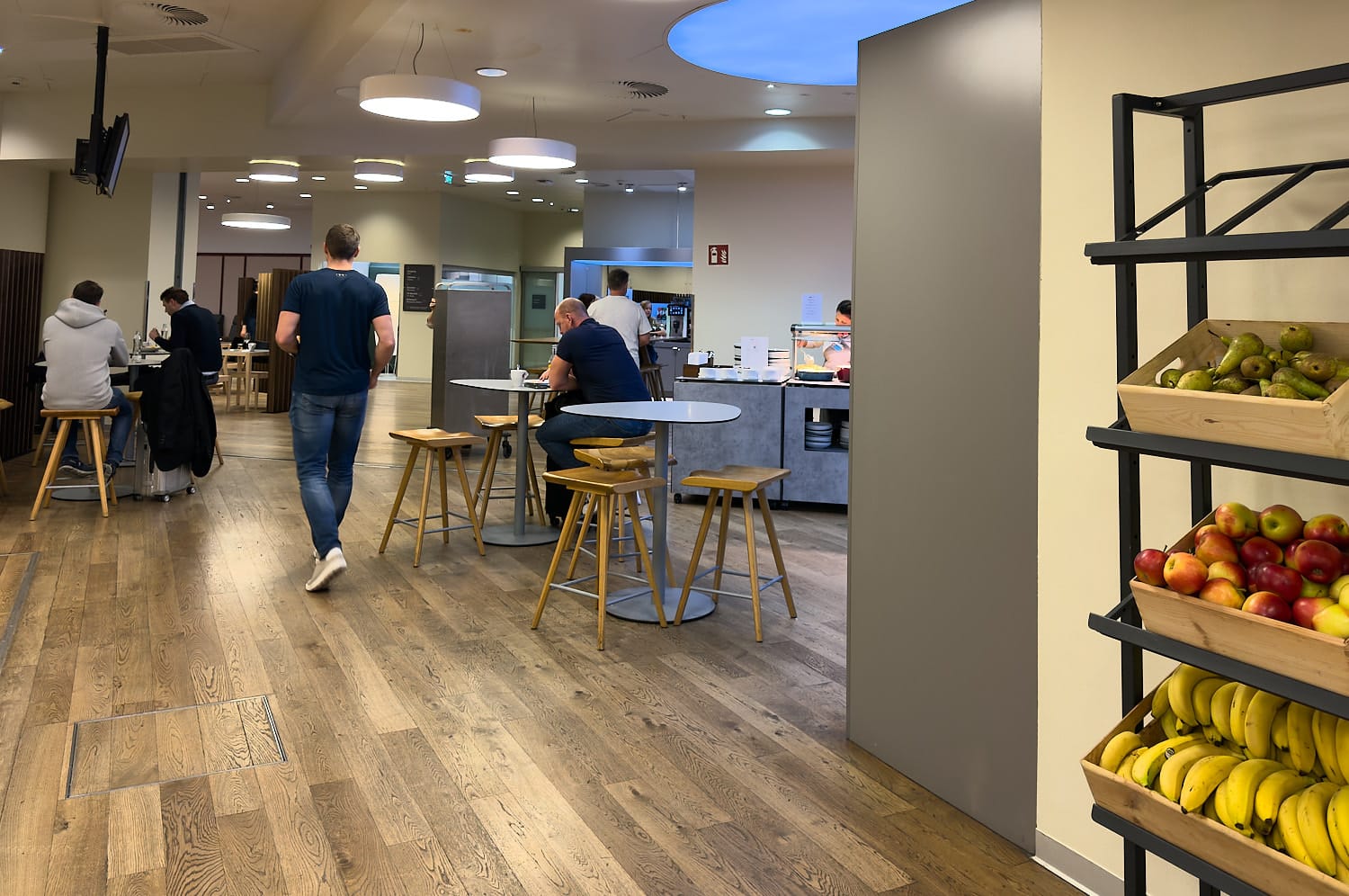 - Напитки: кофемашины, вода, газировка, вино, крепкий алкоголь — всё в формате самообслуживания.