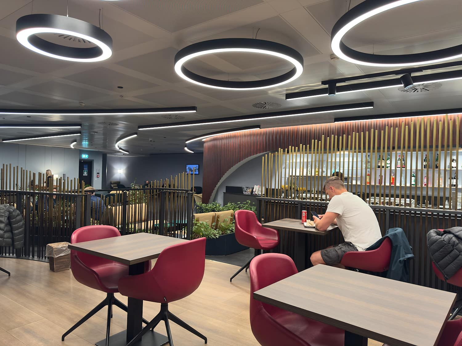 Единственный приятный момент — курилка рядом с залом, что редкость для аэропортов Европы. Тем, кто не курит, бонус сомнительный, но для курящих пассажиров — спасение.