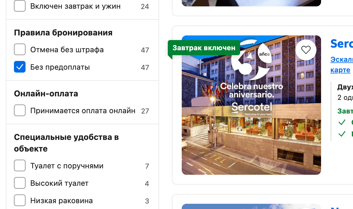 Открываю сайт Букинг.ком, ищу отель например в Андорре (не ЕС, хотя Европа).