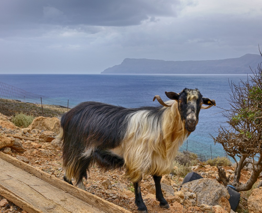 На стоянке полно коз, которые привыкли, что туристы кормят их чипсами.