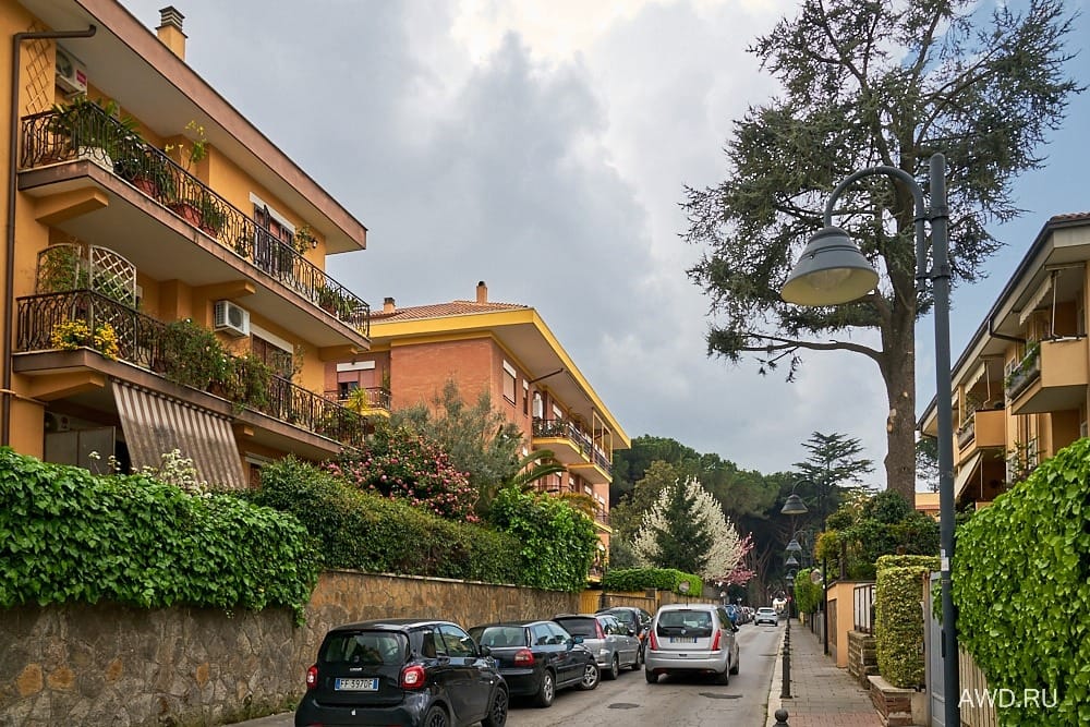 Не смогу сказать про железную дорогу, но на арендованном в аэропорту автомобиле я доехал до забронированных апартаментов в одном из цепочки городов на Альбанских холмах — Альбано Лациале — за 40 минут (с учетом вечерних пробок).