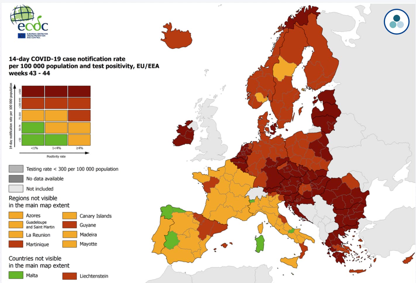 Европа краснеет и вводит дополнительные ограничения для не вакцинированных граждан.