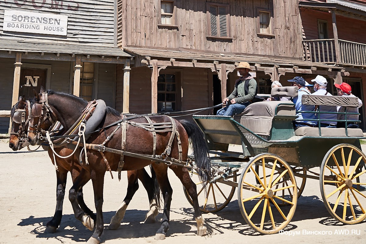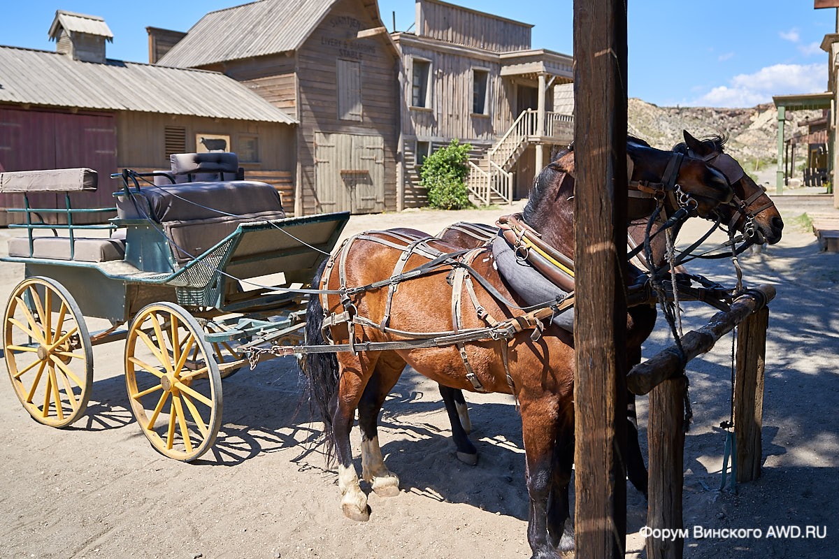 В Форте Браво в стоимость билета на въезд входит посещение шоу (стрелялка в стенах салуна) и поездка на шарабане.