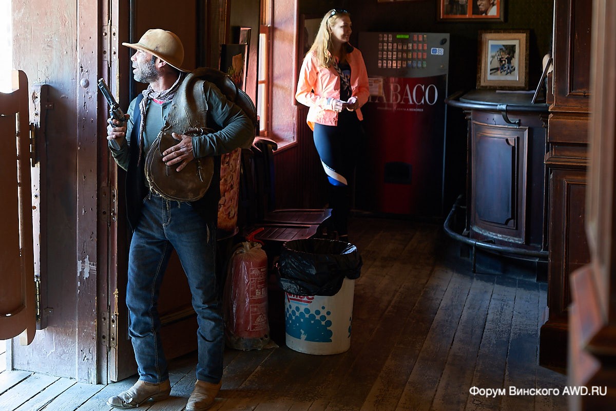 Здесь же была антреприза внутри салуна с диалогом на испанском и скромной стрельбой холостыми.