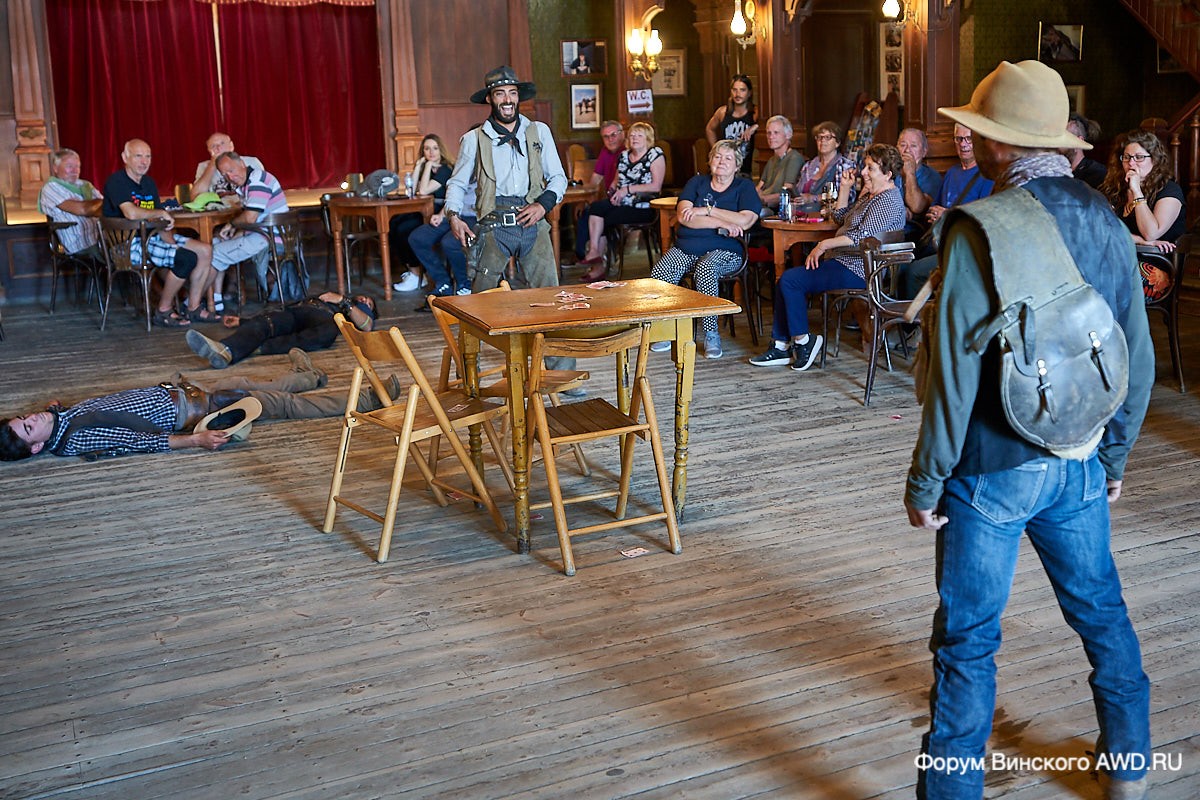 Мы приехали позже времени начала шоу и проходя по пустынной улице, среди декораций Дикого Запада, услышали выстрелы.