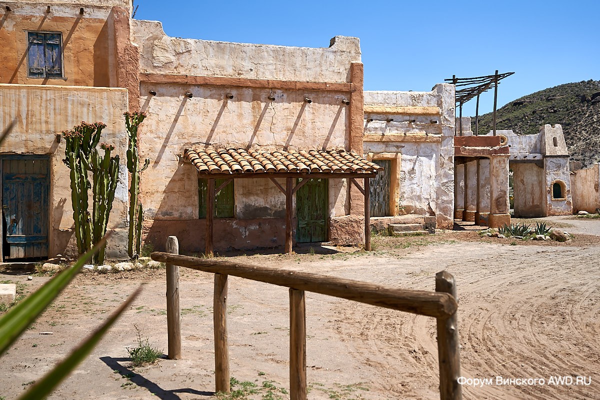 Недалеко от Альмерия, в пустыне Табернас, расположено несколько киношных площадок с декорациями к фильмам-вестернам.