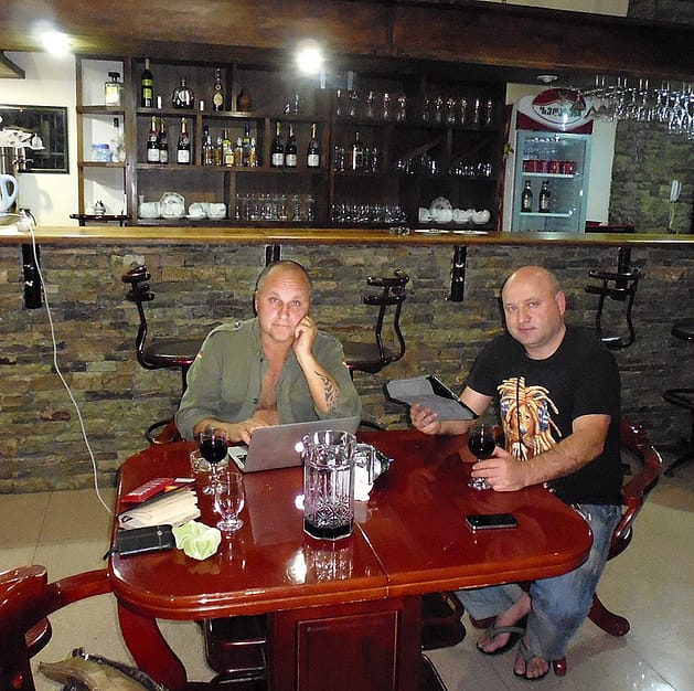 Мы обожратые ждём Олега в наших апартаментах — он прилетает в полночь из Киева. Архипыч его встречает и привозит в наш отель Citadines Freedom Square Tbilisi. Бокальчик за встречу и надо накормить гостя — мы тут уже на правах местных жителей.