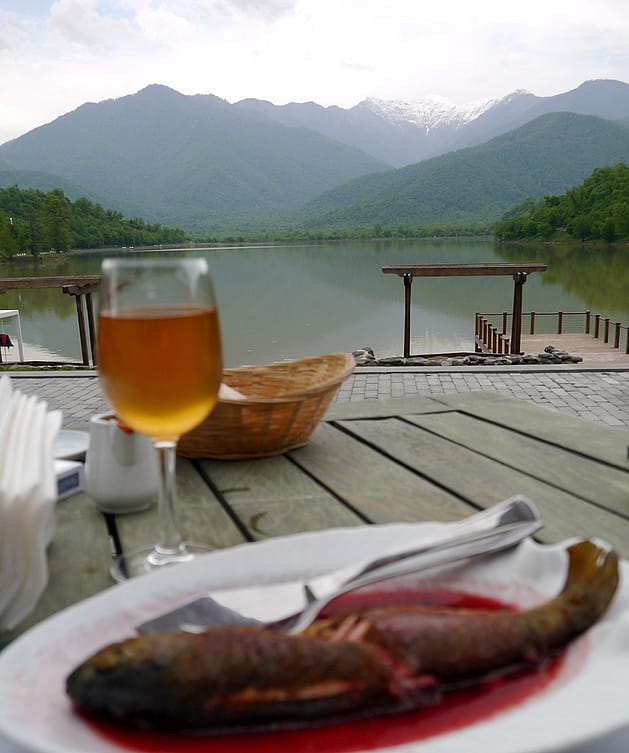 Ах да! Чуть не забыл: во время путешествия по Грузии только наш гид и водитель, смог приготовить правильно форель — на шампуре в соли.