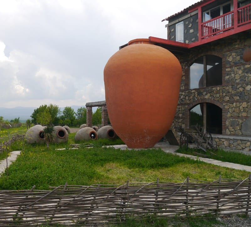 Готовят вино в Грузии особенным способом: после сбора винограда, его давят с кожурой и косточками в сок, который ферментируется за счёт бактерий, которые как пыль живут на кожуре виноградин.