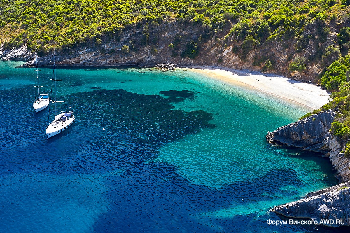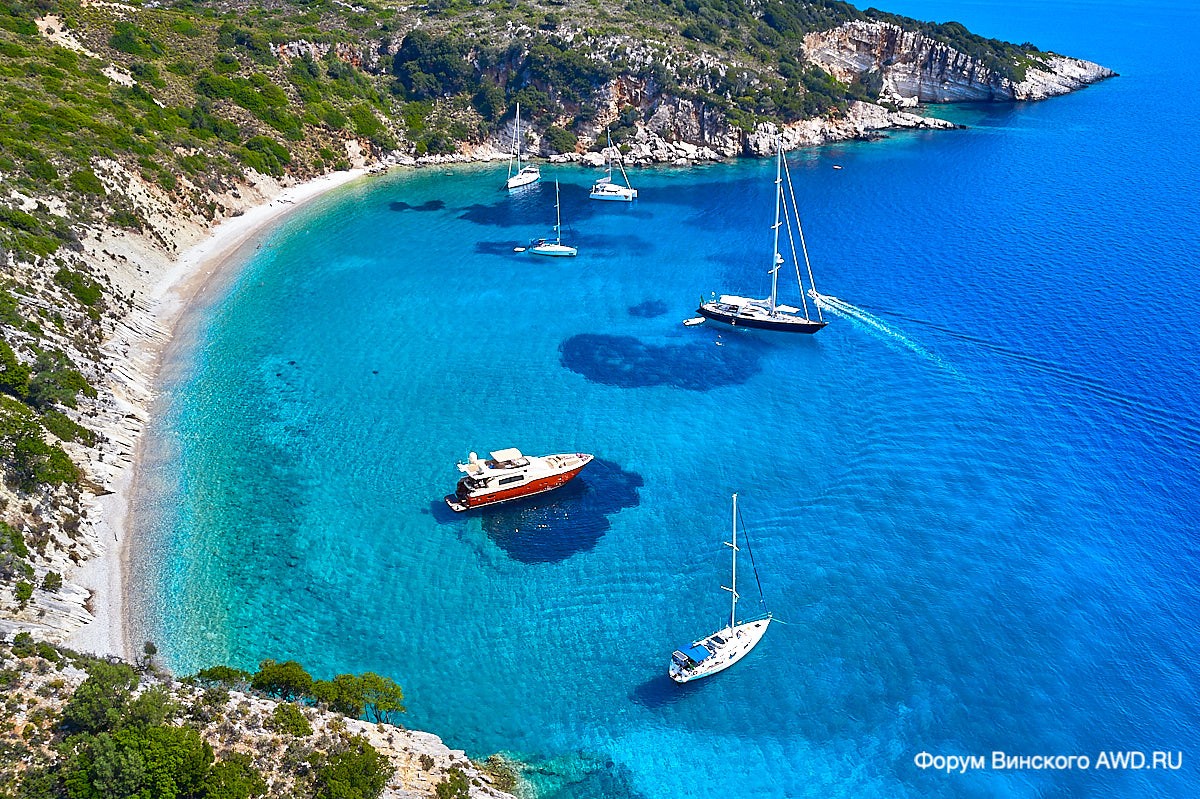 И это не удивительно: береговая линия острова Итака Греция — изобилует уединенными бухтами, а глубины и спокойствие моря позволяют чалиться у самого берега.