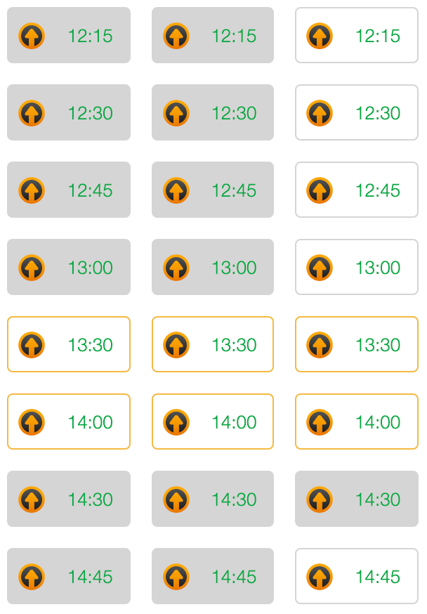 Такие же (белый фон) но уже с желтой рамкой (13:30, 14:00) — платные.