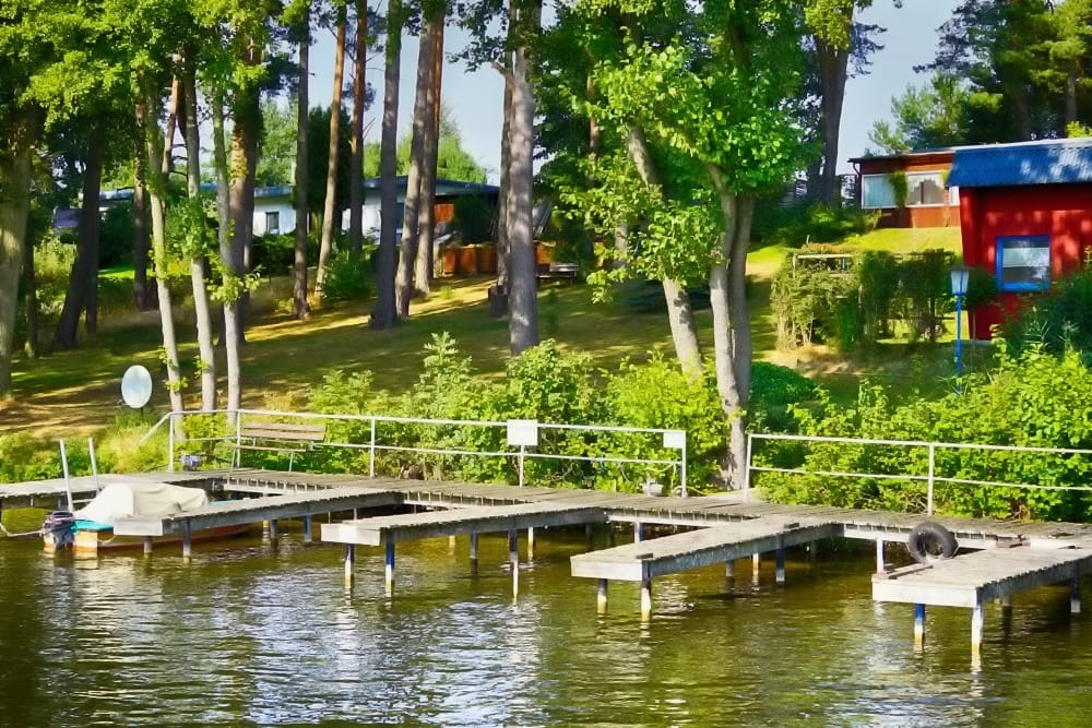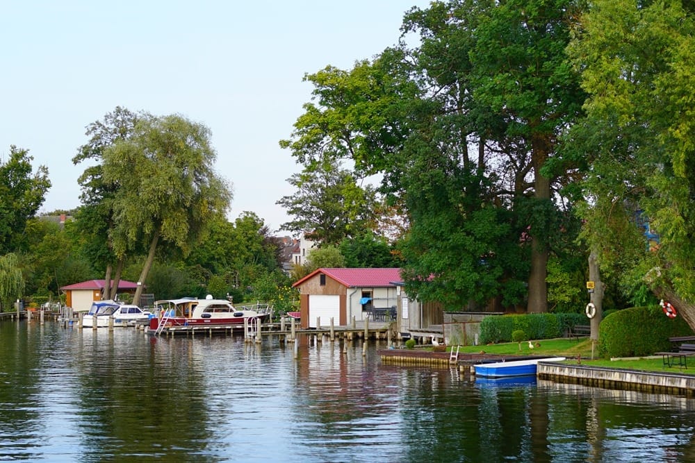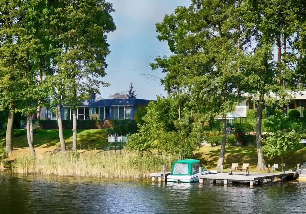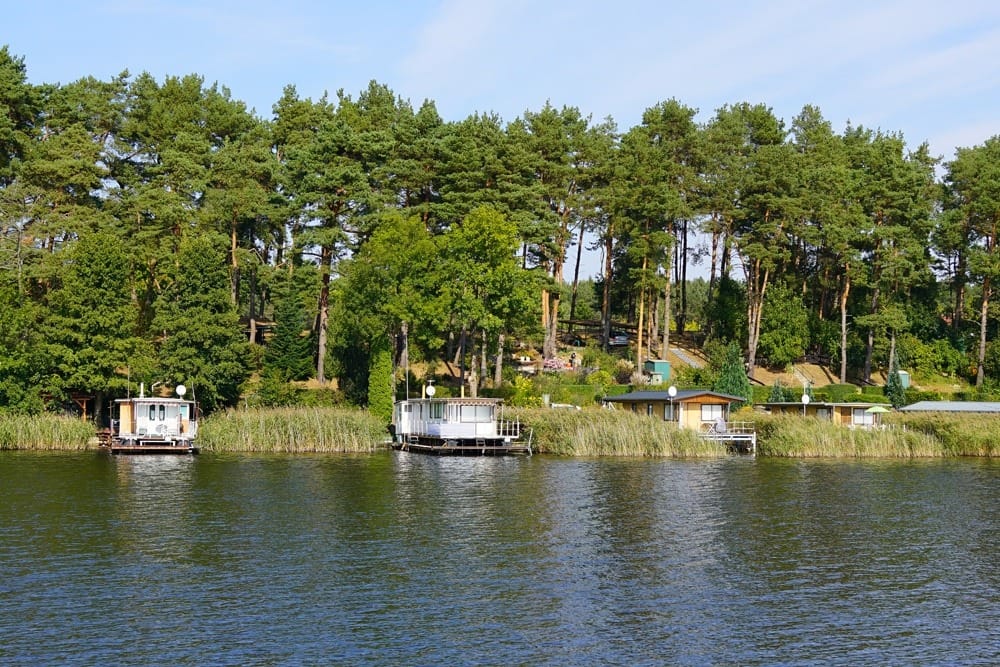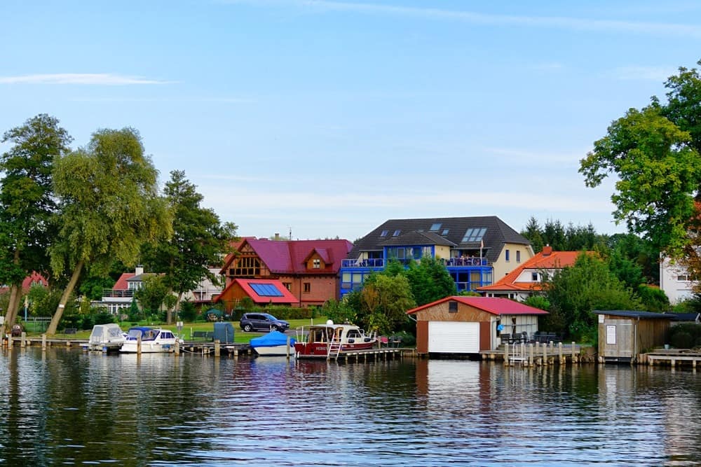 В других местах — например южнее, ближе к городу Rheinsberg и Canow дачи действительно отстоят от береговой линии на 50 метров, но зато берег оборудован причалами для лодок, пляжами, а если нет пляжа, то будут лестницы для захода в воду.