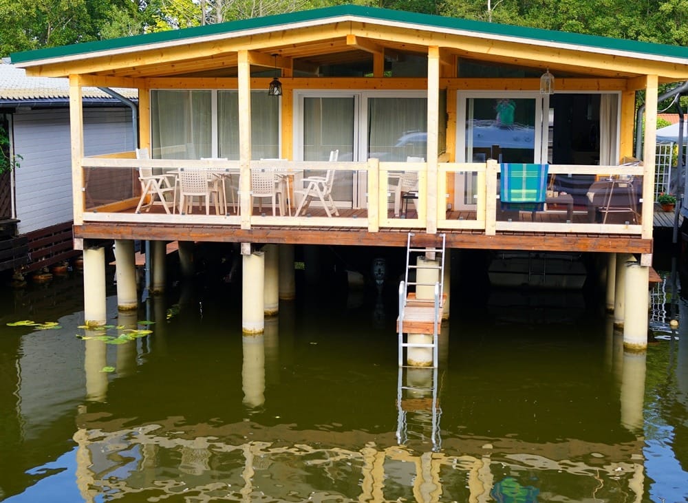 Все запреты соблюдены: дом стоит не на берегу, а на воде, на сваях.