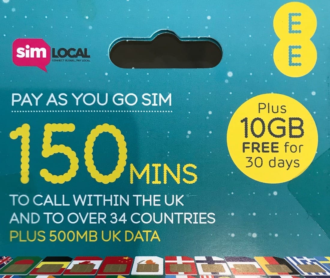 Стоимость пакета (симка, интернет пакет, 150 минут на звонки в ЕС и Британии) = 20 фунтов.