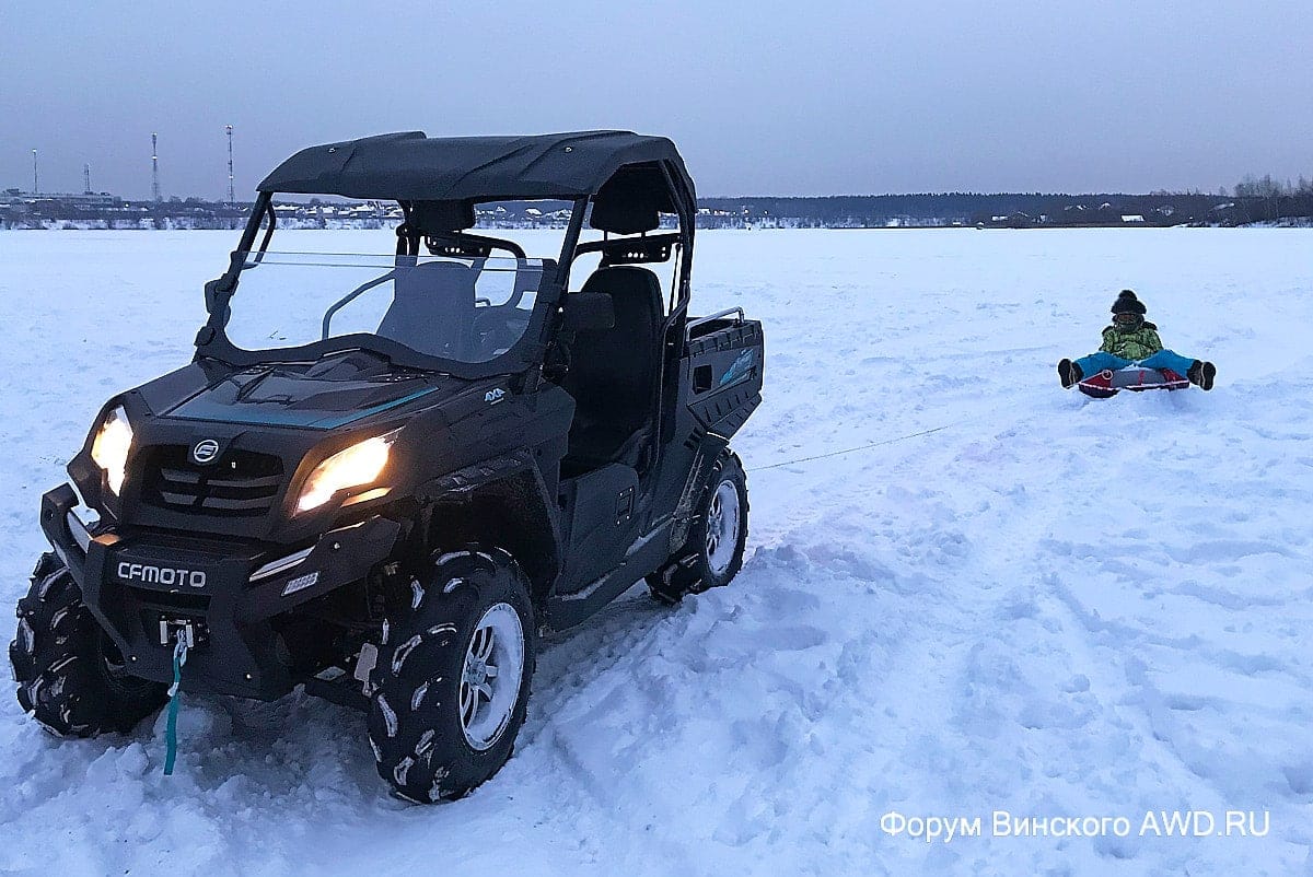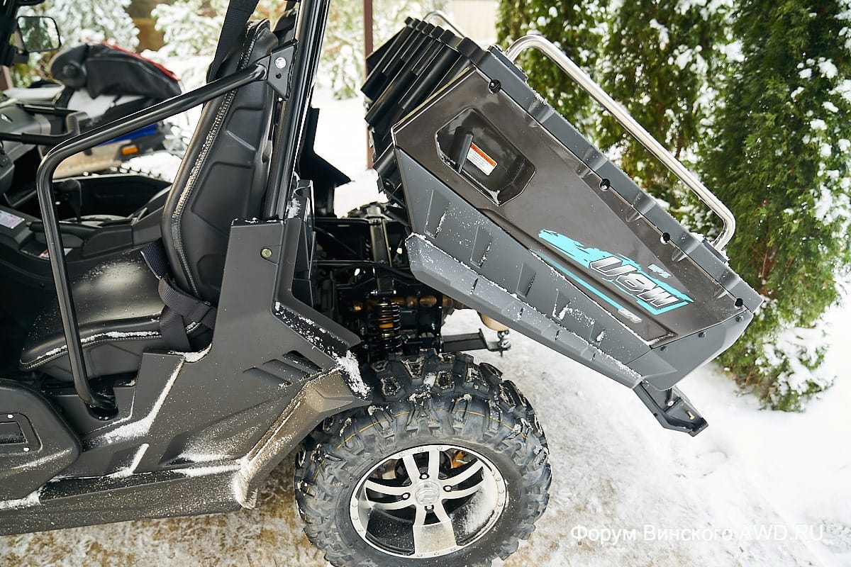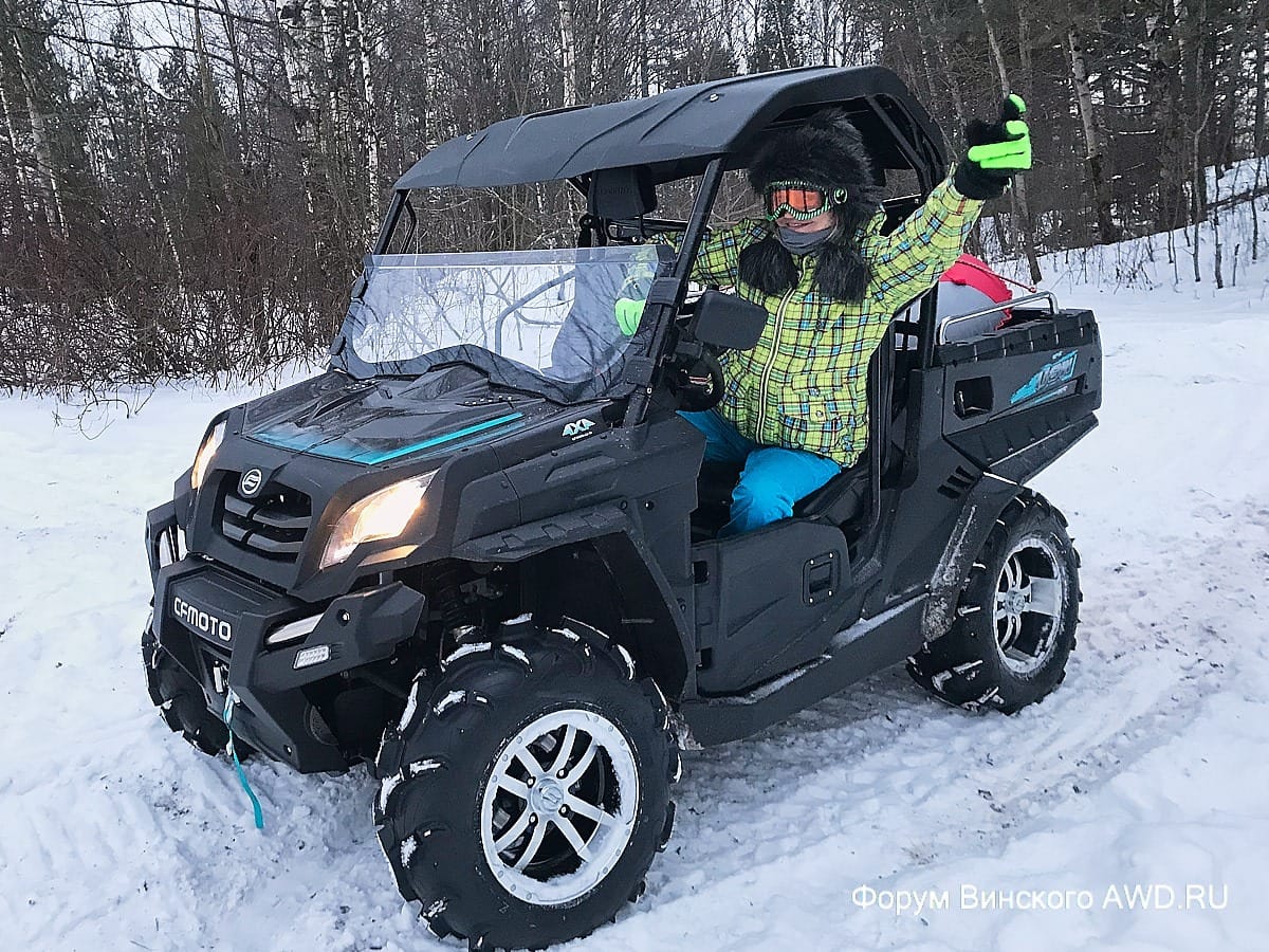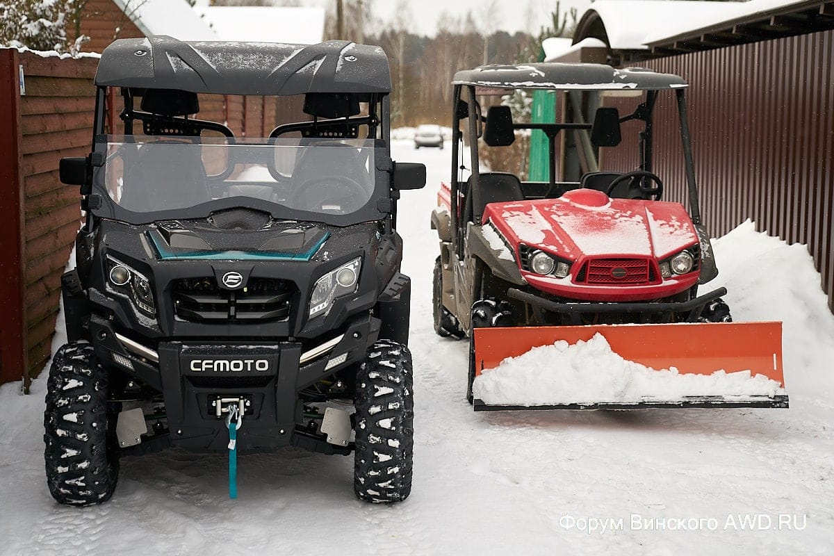 В CFMoto подкупает комплектация: в стандартной комплектации крыша/двери, лебедка, фаркоп, литые диски…