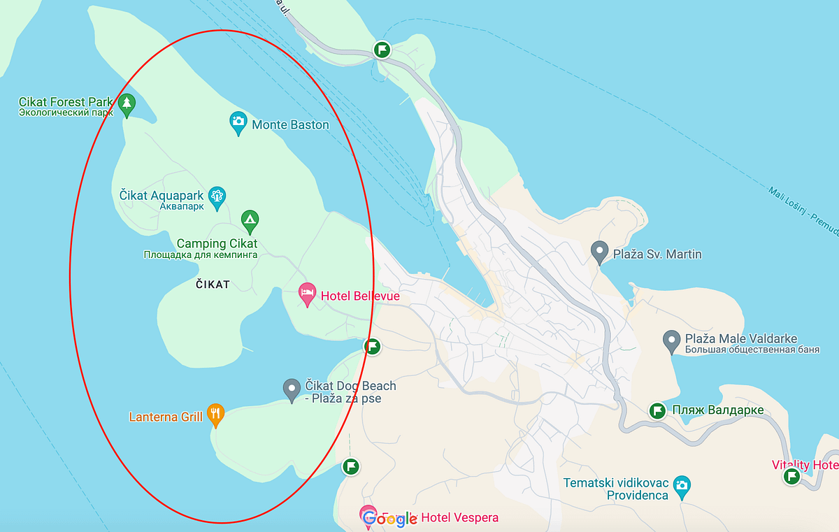 Парк Чикат, это полуостров к западу от Мали-Лошинь.