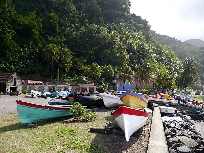 Через некоторое время  перед вами встанет выбор: ехать на север по дороге проходящей в непосредственной близости от вулкана  или слегка увеличив километраж проехать по хорошей дороге сразу до северного побережья, после чего свернуть налево по направлению к самой рыбацкой из всех рыбацких деревень Grand Riviere.