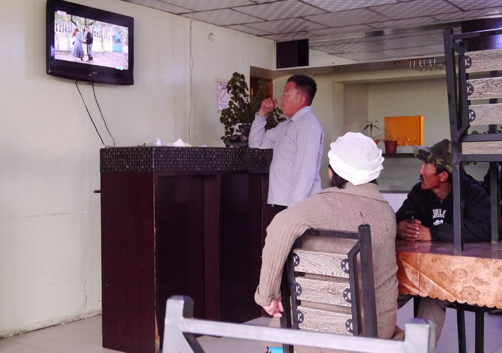 Работники общепита не отрываясь смотрят российский сериал в монгольской озвучке. Канал Россия2.