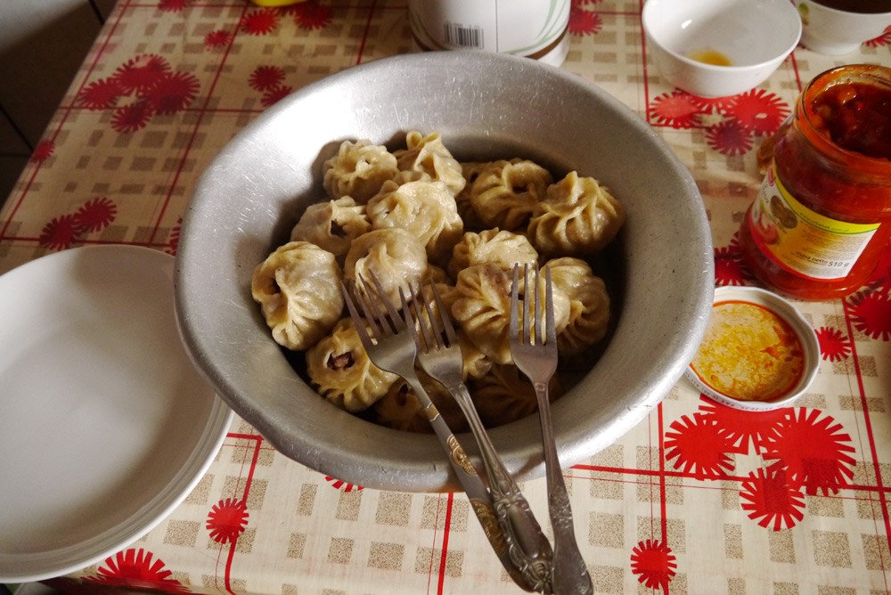 На стол метнула алюминиевый тазик бууз — это вариант бурятских поз и плагиат китайских цзяоцзы — пельменей на пару. Отверстие сверху для выхода пара.