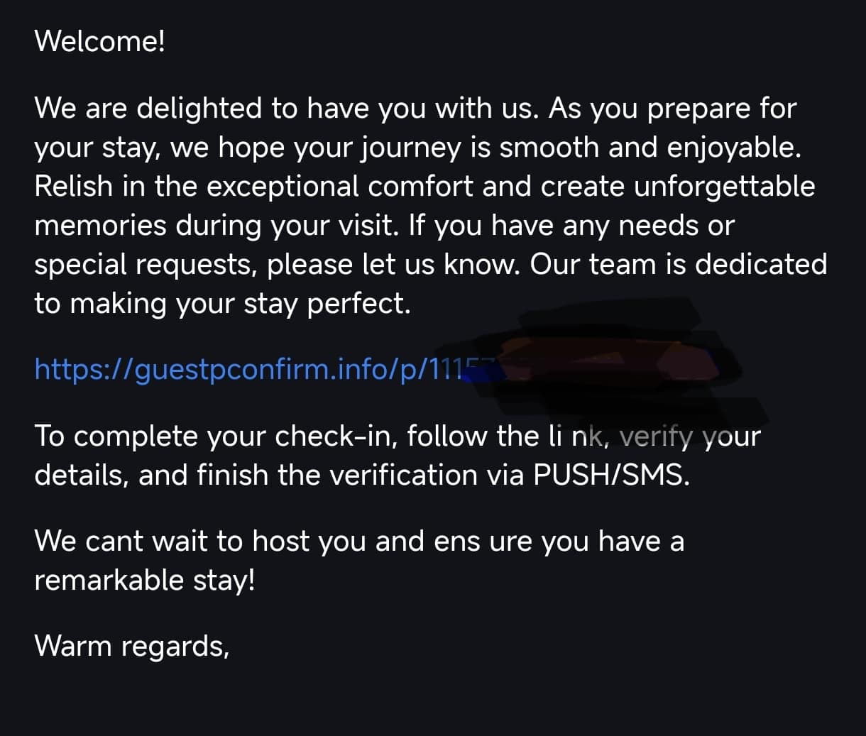 Присланную в сообщении, якобы из отеля, ссылку не открывайте.