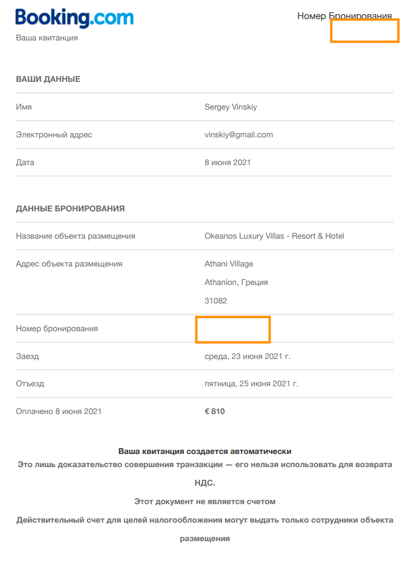 Для большей солидности к брони и чеку об оплате можно приложить скрин выписки с карточного счета или paypal — смотря как оплачивали.