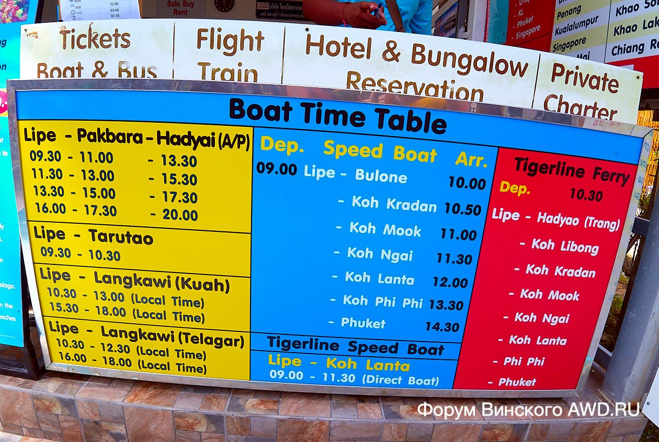 Расписание меняется в зависимости от сезона, от погоды и количества туристов, собирающихся на Ко Липе.
