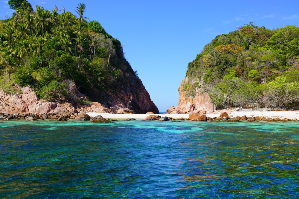 Long Beach или Laguna — длинный пляж разделенный на две части небольшой скалой находится на восточном побережье острова Реданг.