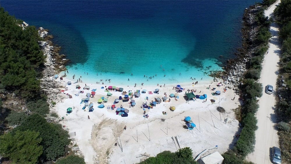 Сразу после съезда с парома мы повернули налево (основная трасса по острову — кольцевая) и поехали вдоль моря к Мраморному пляжу (Marble Beach).