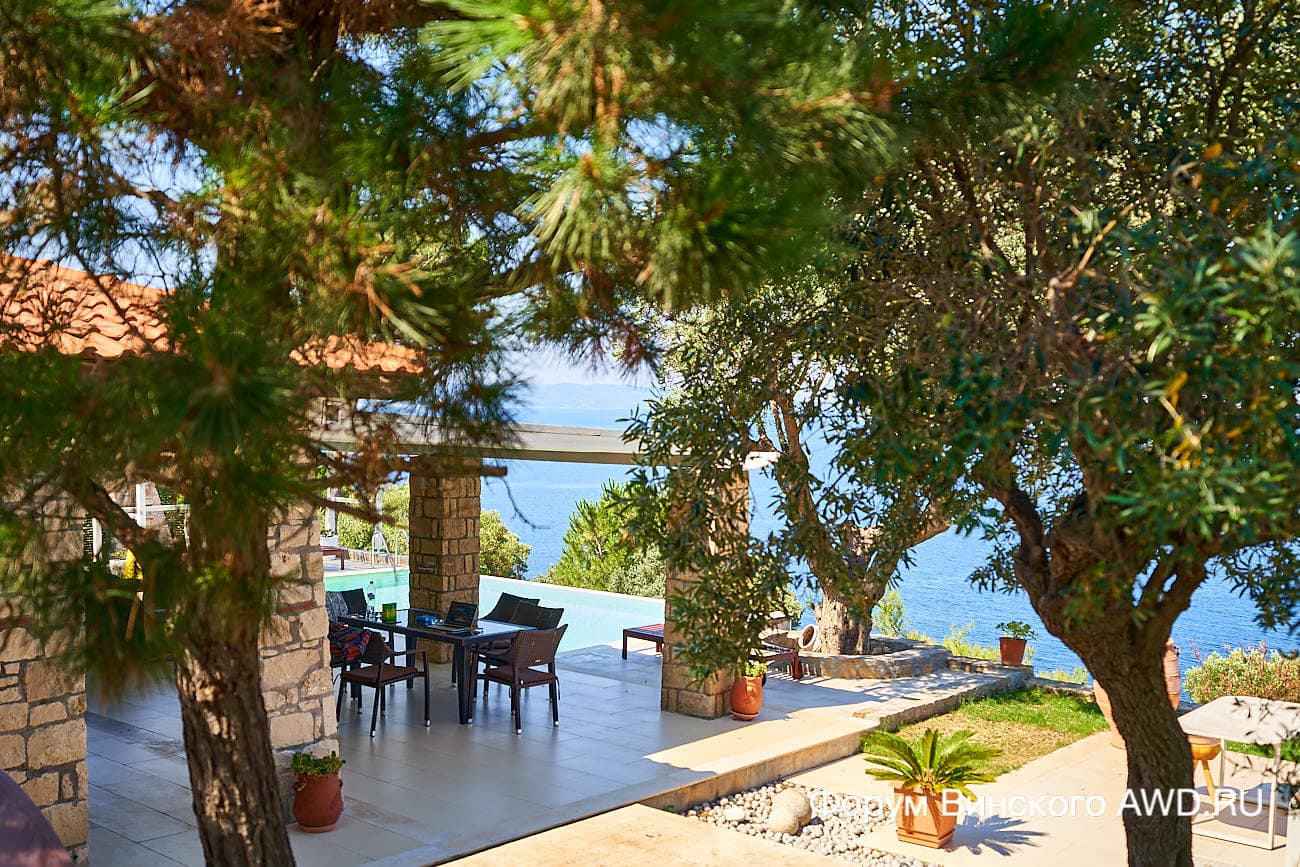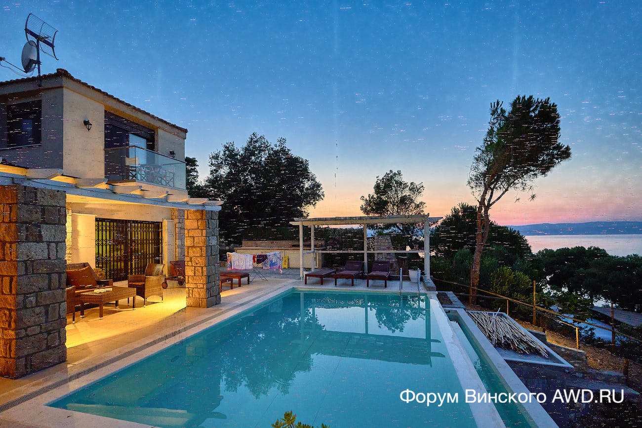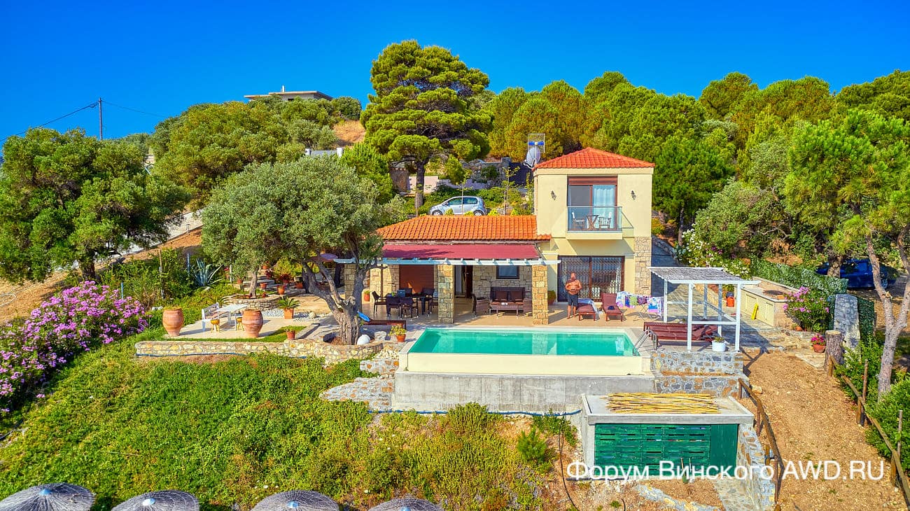 Ну и решающим было то, что нашел и забронировал симпатичный домик с бассейном и видом на море, Афон и небольшие острова вокруг.