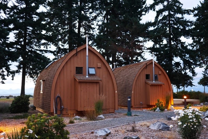 Примеры подобного жилья: Oyster Bay Resort — оригинальные домики из бруса сделанные в форме бочек. Внутри гостиная-кухня, спальня и огромная ванная комната с джакузи