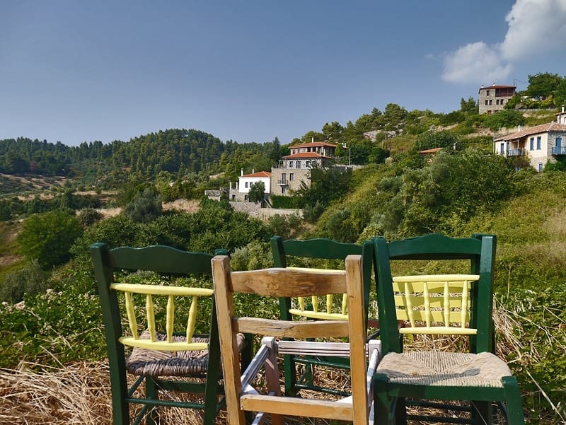 Деревня Парфенонас — небольшая и обойти ее пешком не составит труда за час, хотя с первого раза рассматривая аккуратные дома на заросшим фруктовыми деревьями склоне кажется что тут понадобится велосипед как минимум.