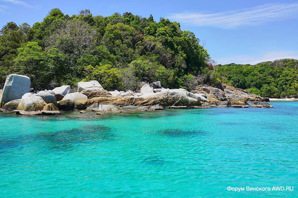 С одной стороны бухты — крупные камни «а-ля Сейшелы».