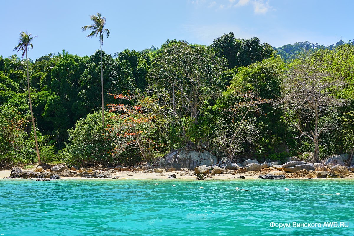 Лодочник обозвал этот пляж Мира бич, а на берегу отчетливо видно название Петани бич (Petani beach)