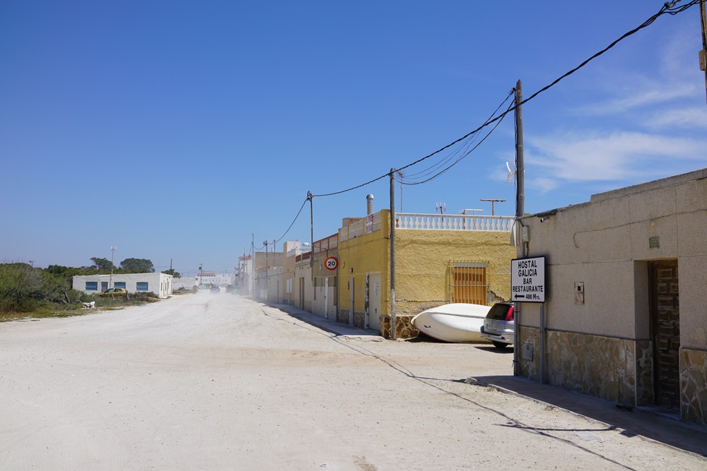 Внешний вид пыльной прибрежной улицы с дорогой без твердого покрытия мне напомнил ебеня Боливии, вблизи солончака Уйюни.