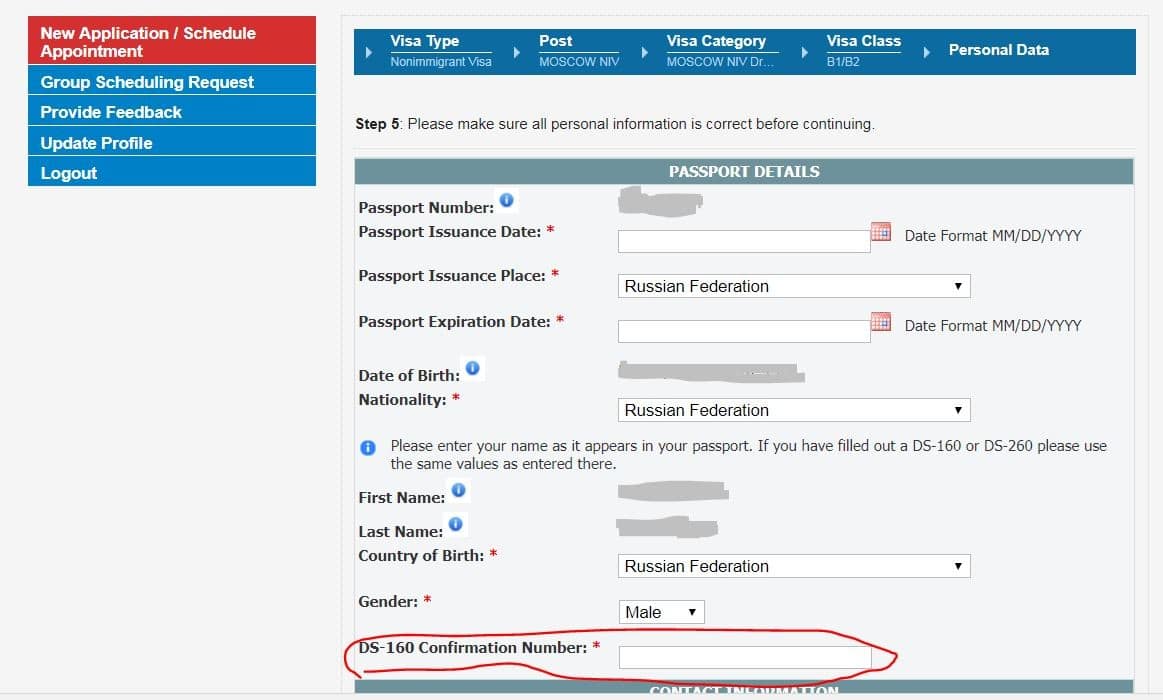 Шаг 4: Запись на подачу документов на визу в США без собеседования