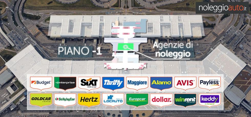 В миланском аэропорту Мальпенса терминал 1 все офисы прокатчиков находятся на -1 этаже (ниже зоны прибытия).