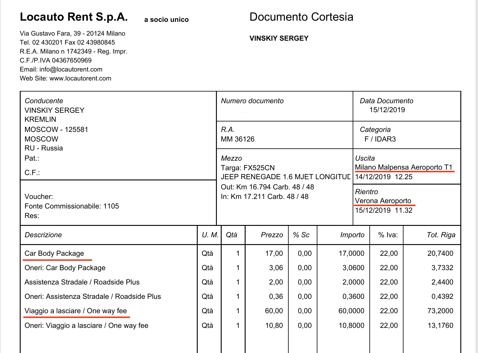В следующий раз по возможности буду избегать Locauto и Enterprise в аэропорту Милана Мальпенса.