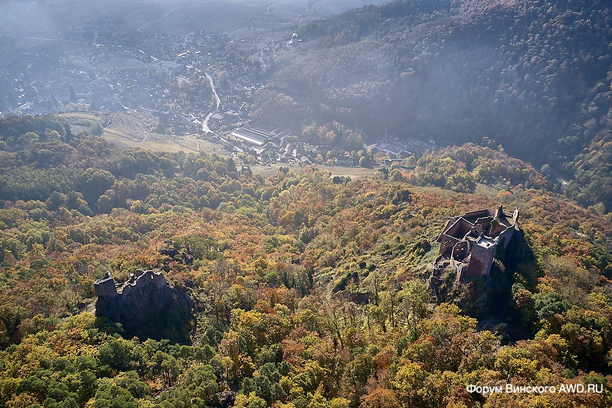 Мы выбрали этот городок на винной дороге Эльзаса из-за того, что над ним, на ближайшем холме находятся сразу две крепости: Château du Haut-Ribeaupierre и Château du Girsberg.