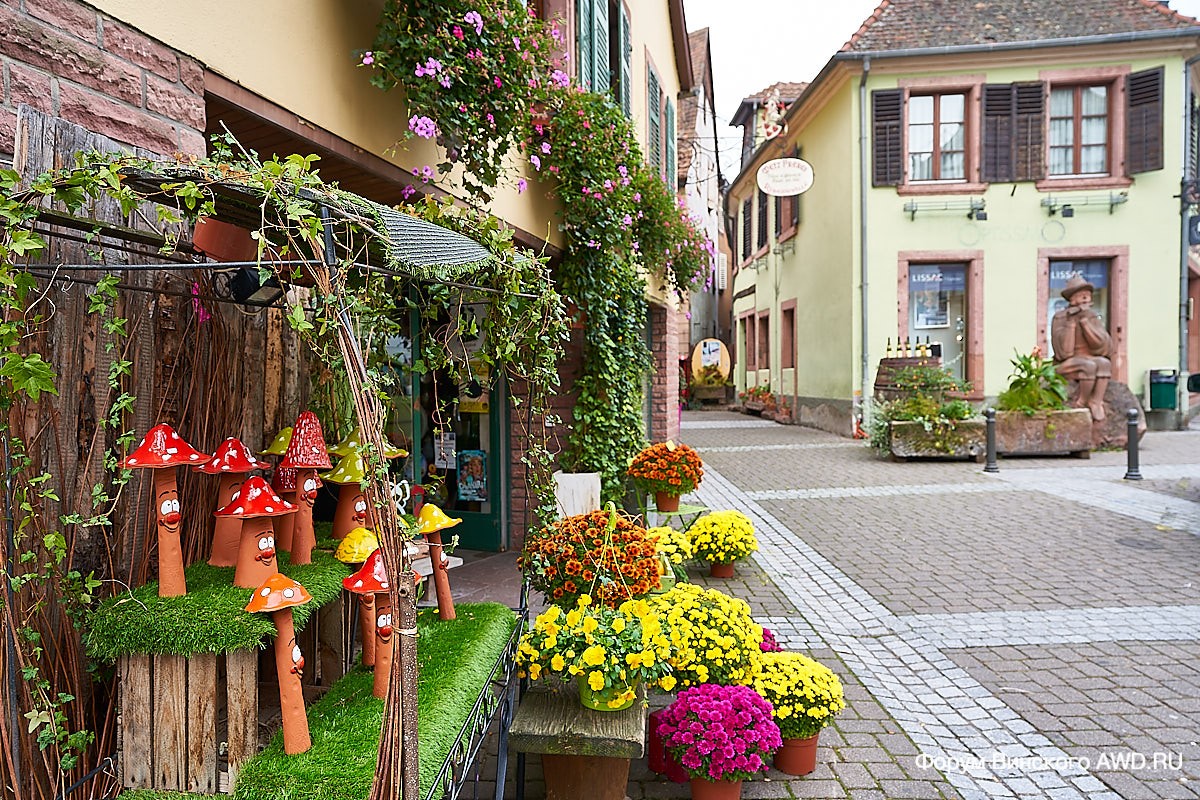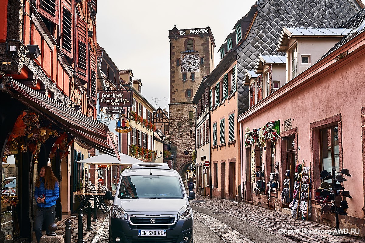 Паркинг в центре города бесплатный (синяя разметка), поэтому бросив машину на нем, мы пошли исследовать Рибовилле.