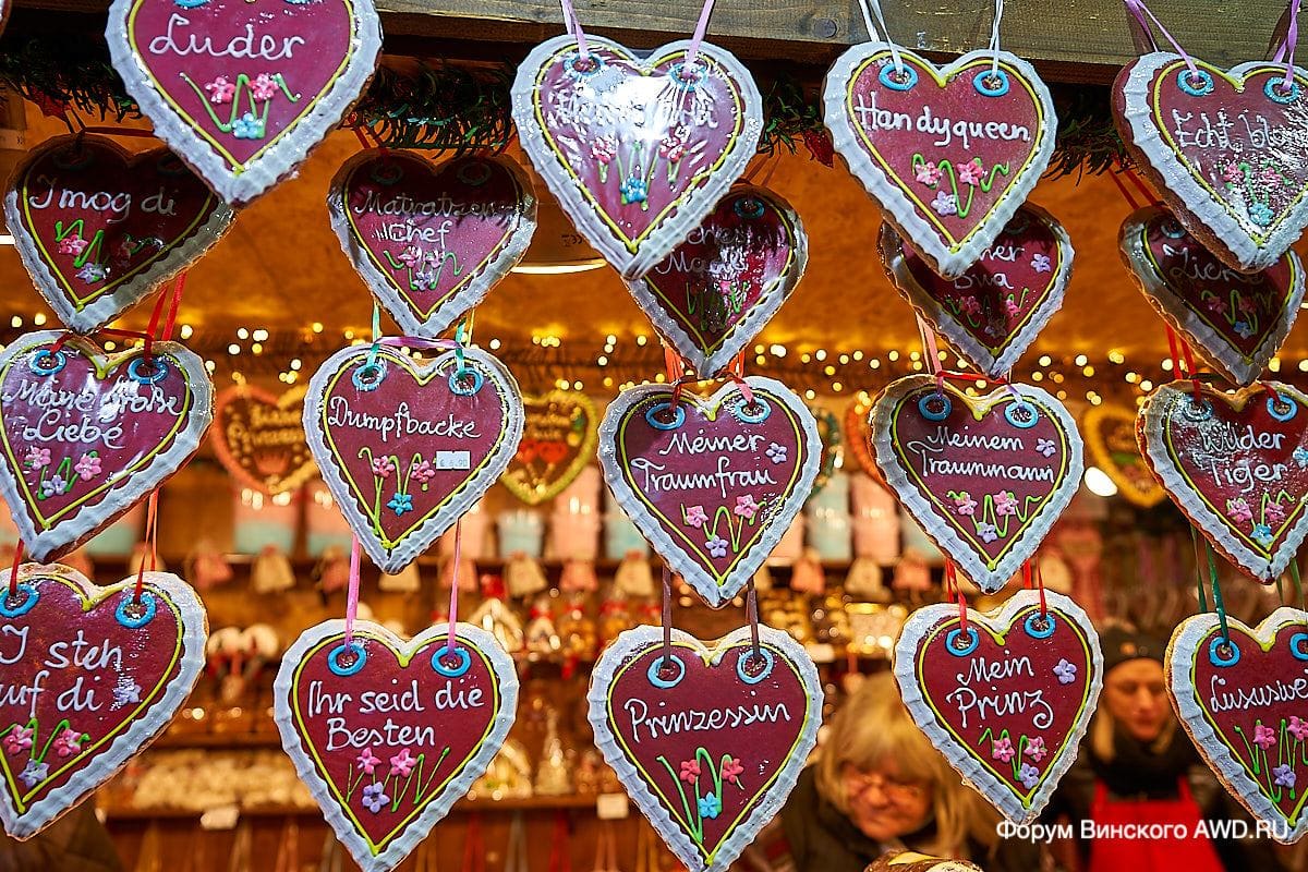 Весь парк перед ратушей заставлен палатками с сувенирами, елочными игрушками. Здесь же наливают горячее вино и продают разную вкуснятину.